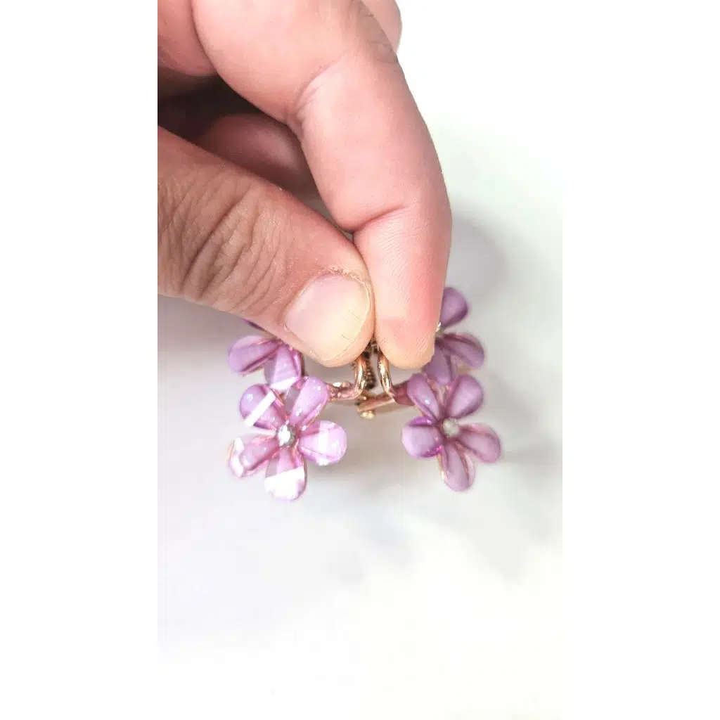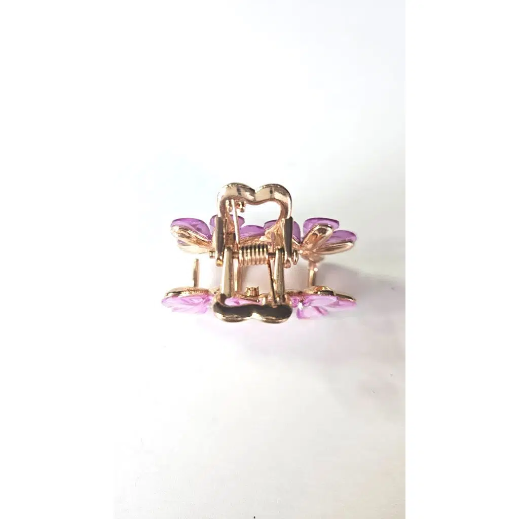 Mor Taşlı Çiçek Metal Mandal Toka 4 cm
