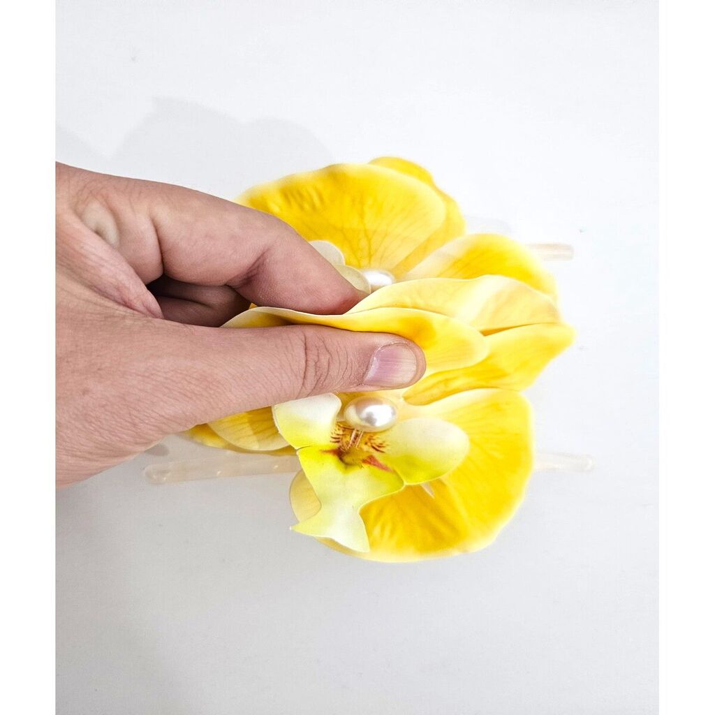 Orkide Çiçeği İncili Mandal Toka 10 cm Çift Taraflı 1 adet