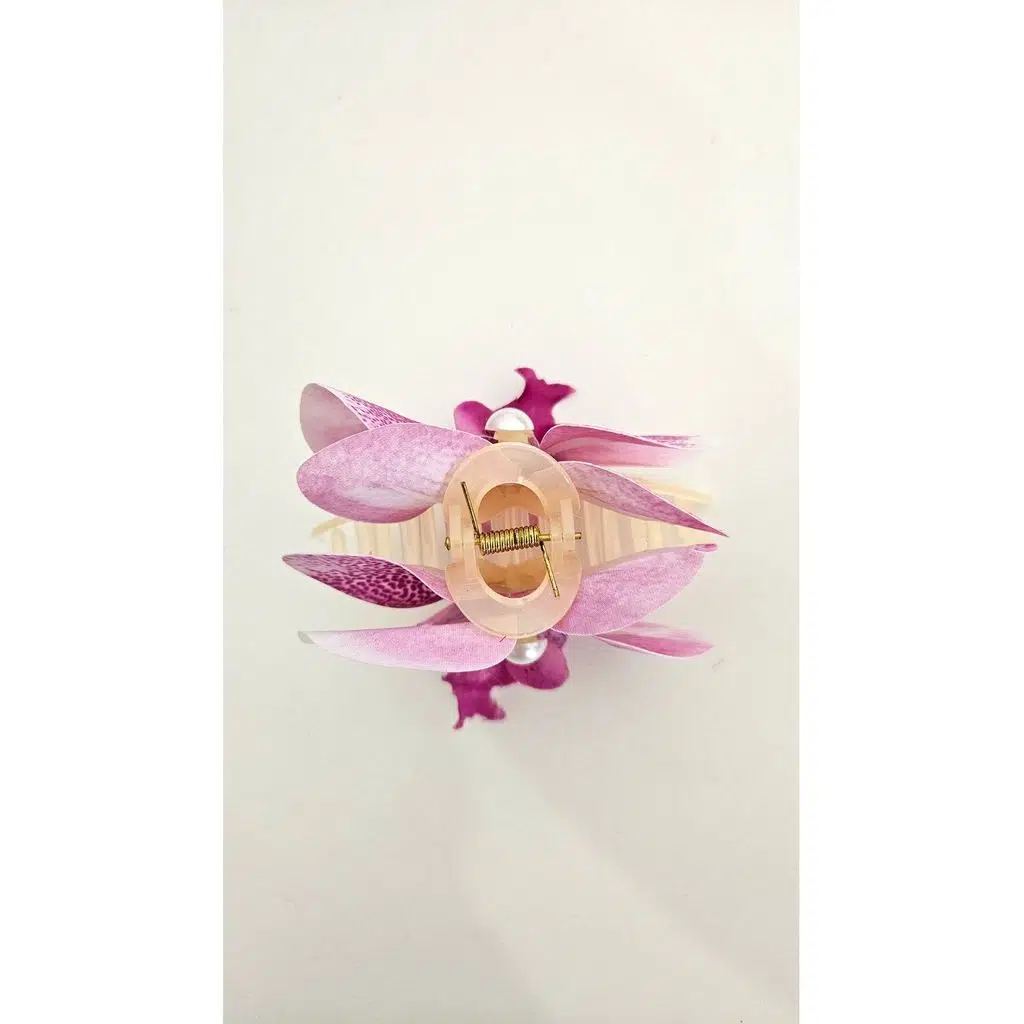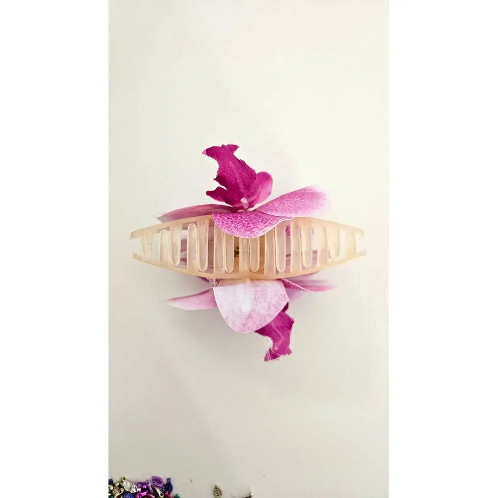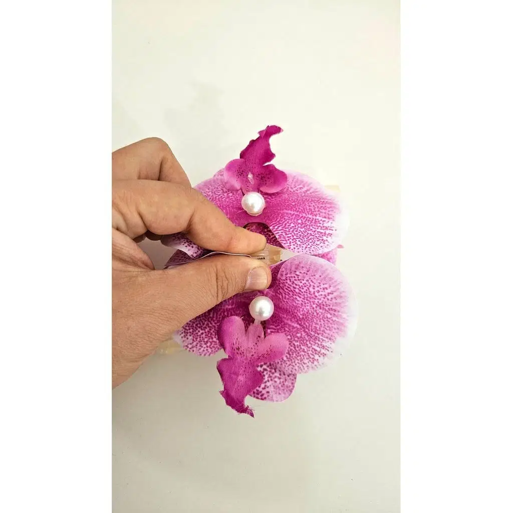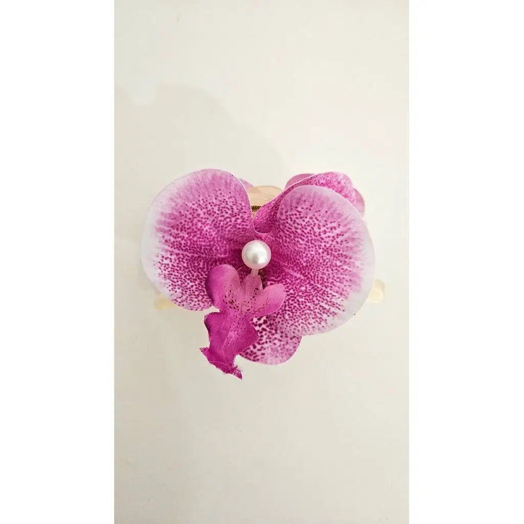 Orkide Çiçeği İncili Mandal Toka 10 cm Çift Taraflı 1 adet