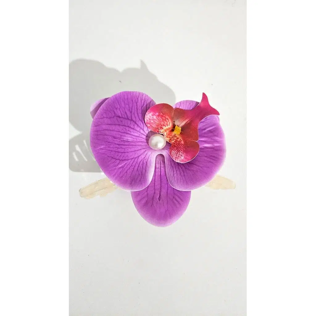 Orkide Çiçeği İncili Mandal Toka 10 cm Çift Taraflı 1 adet