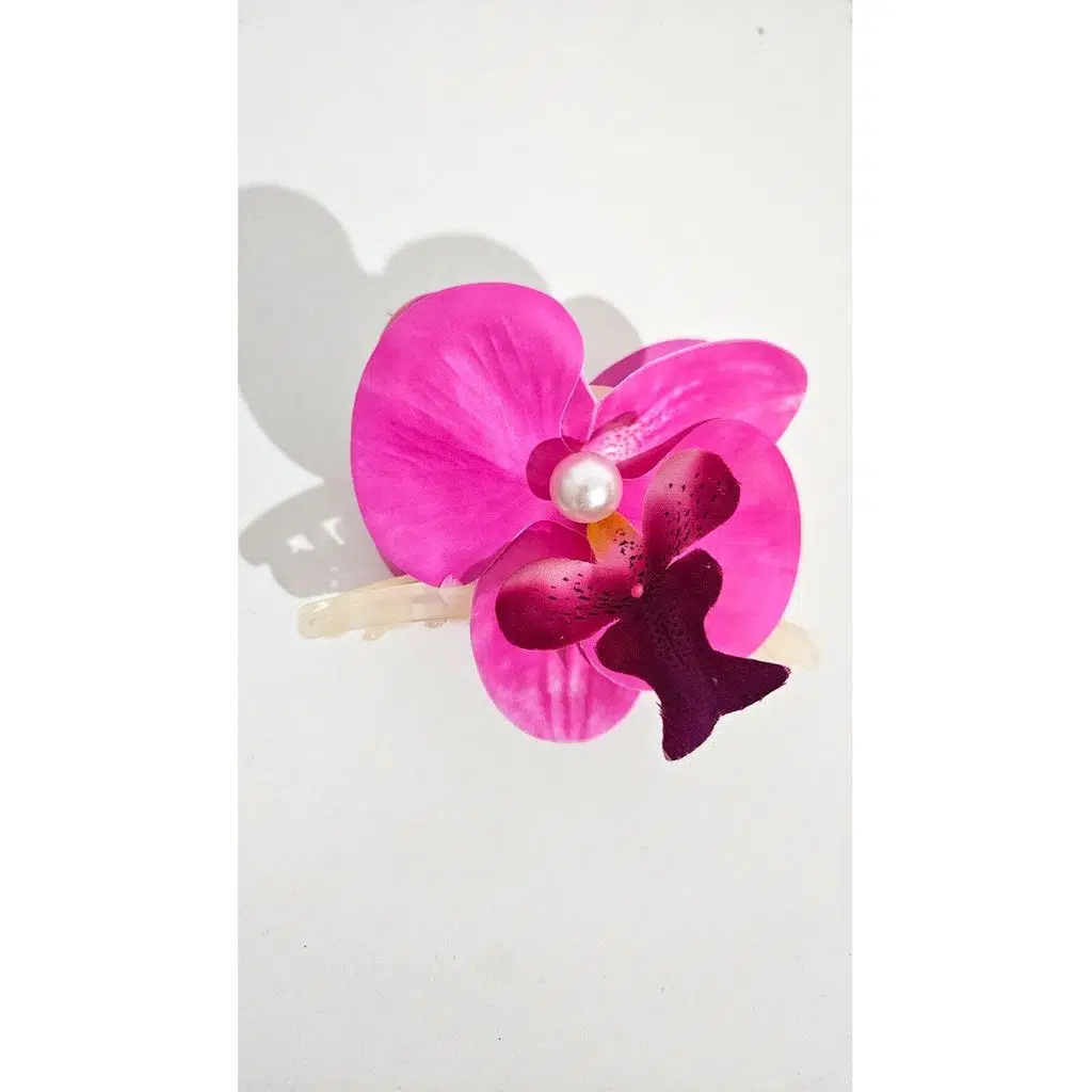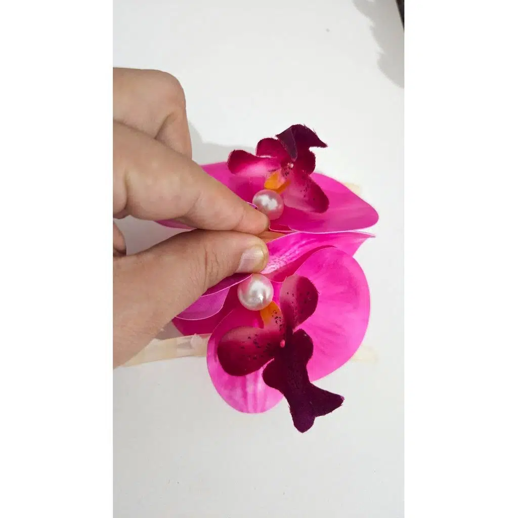 Orkide Çiçeği İncili Mandal Toka 10 cm Çift Taraflı 1 adet