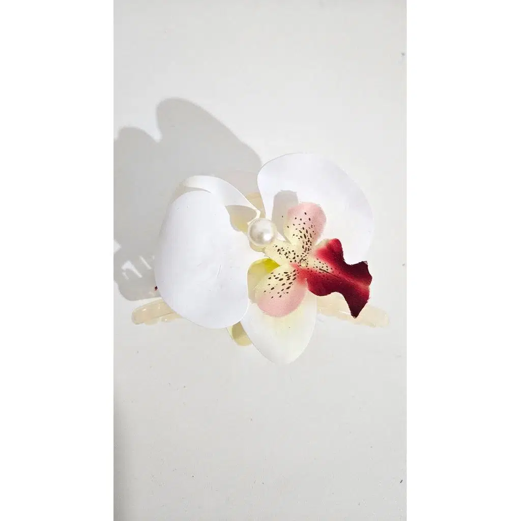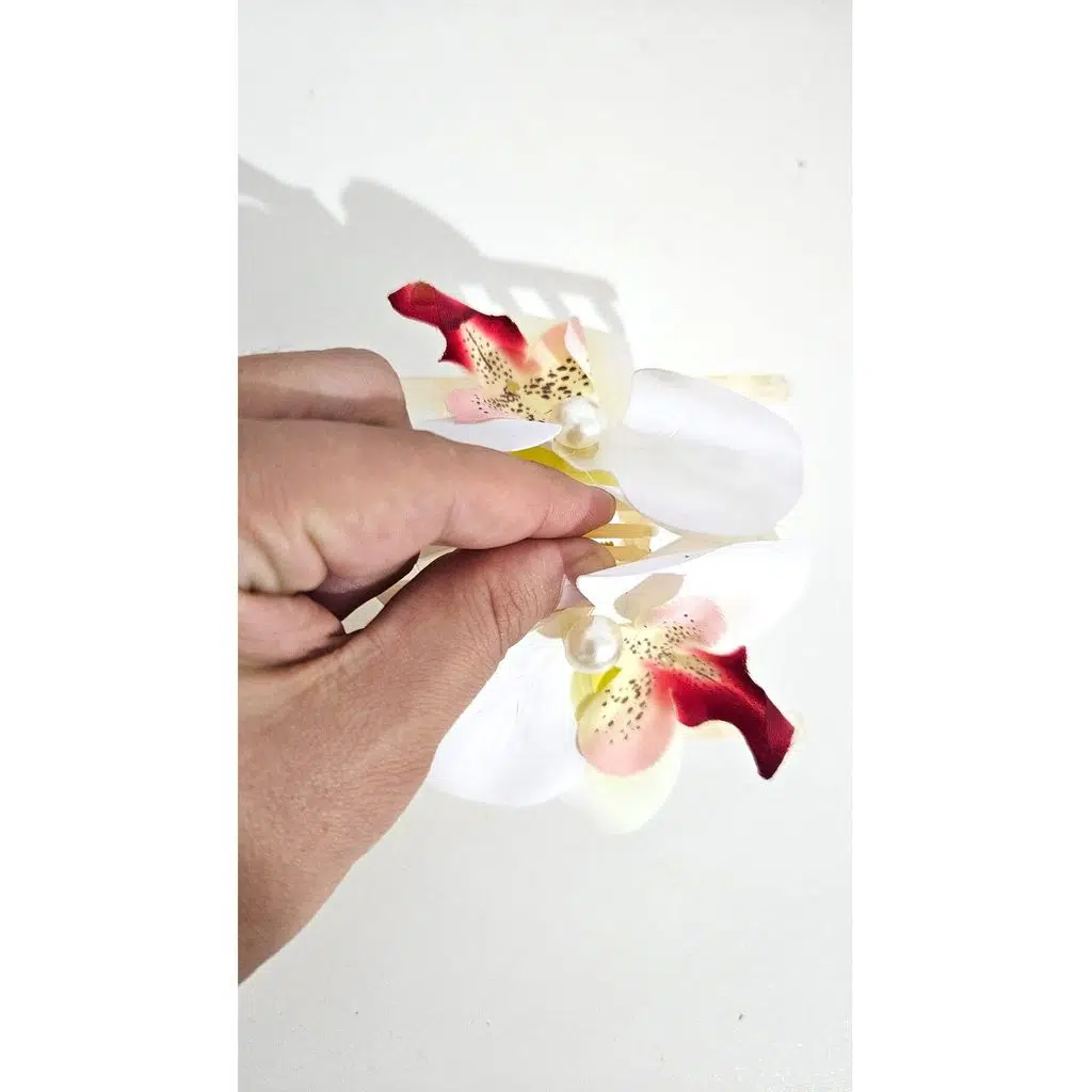 Orkide Çiçeği İncili Mandal Toka 10 cm Çift Taraflı 1 adet