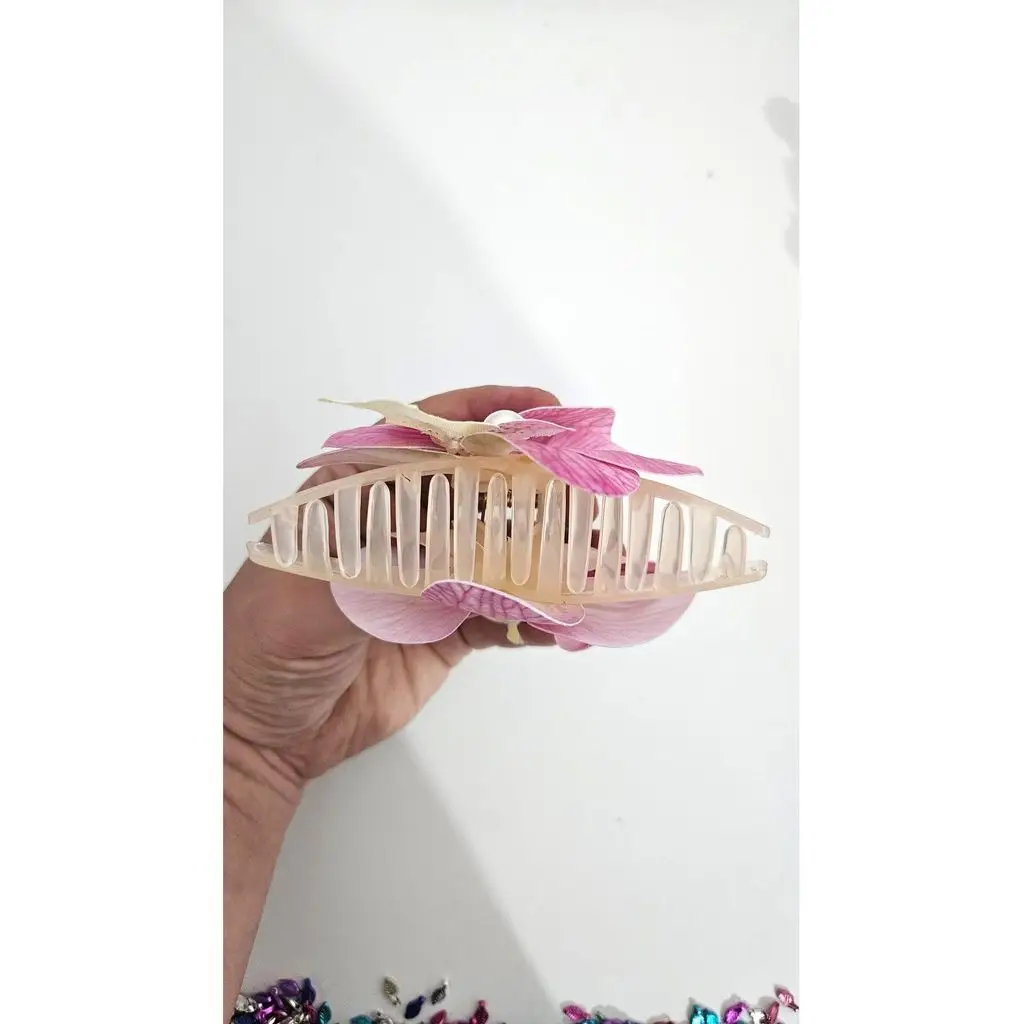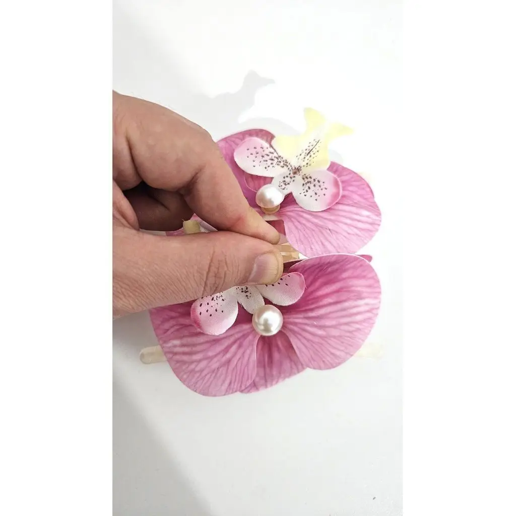 Orkide Çiçeği İncili Mandal Toka 10 cm Çift Taraflı 1 adet