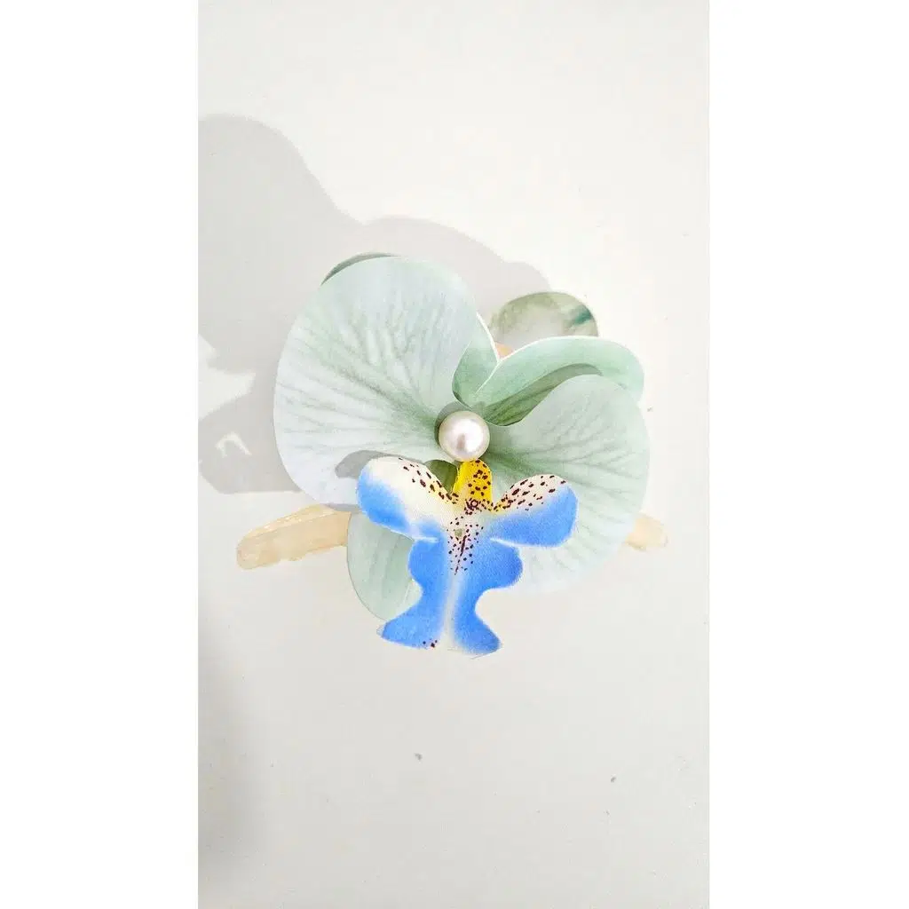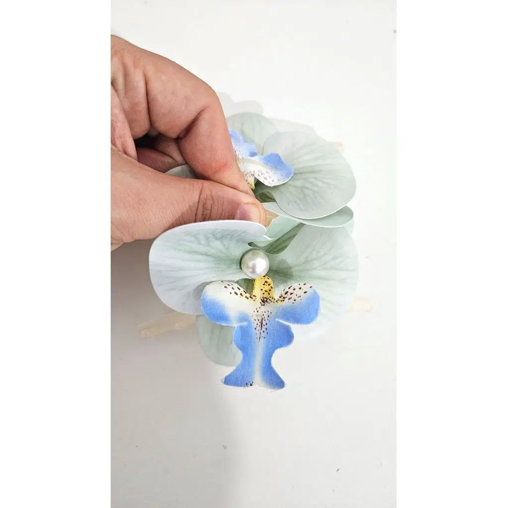 Orkide Çiçeği İncili Mandal Toka 10 cm Çift Taraflı 1 adet