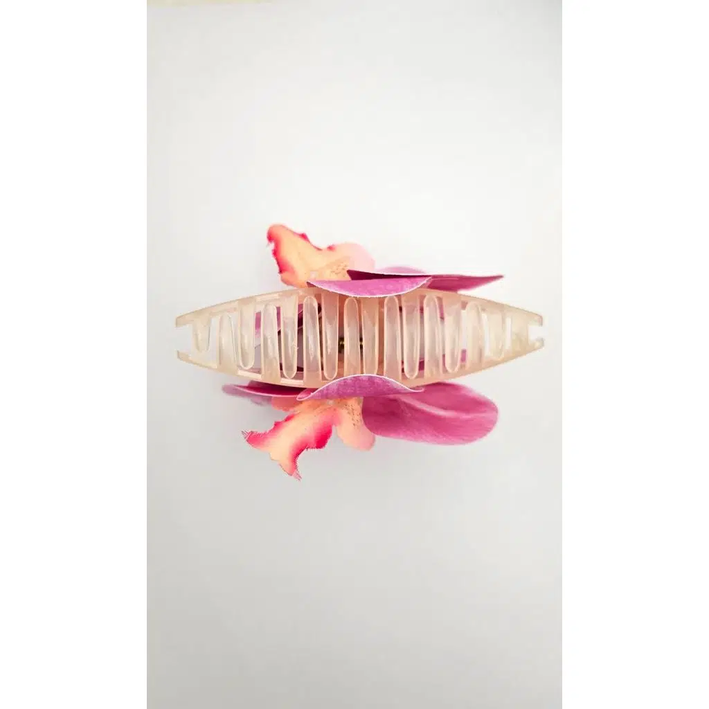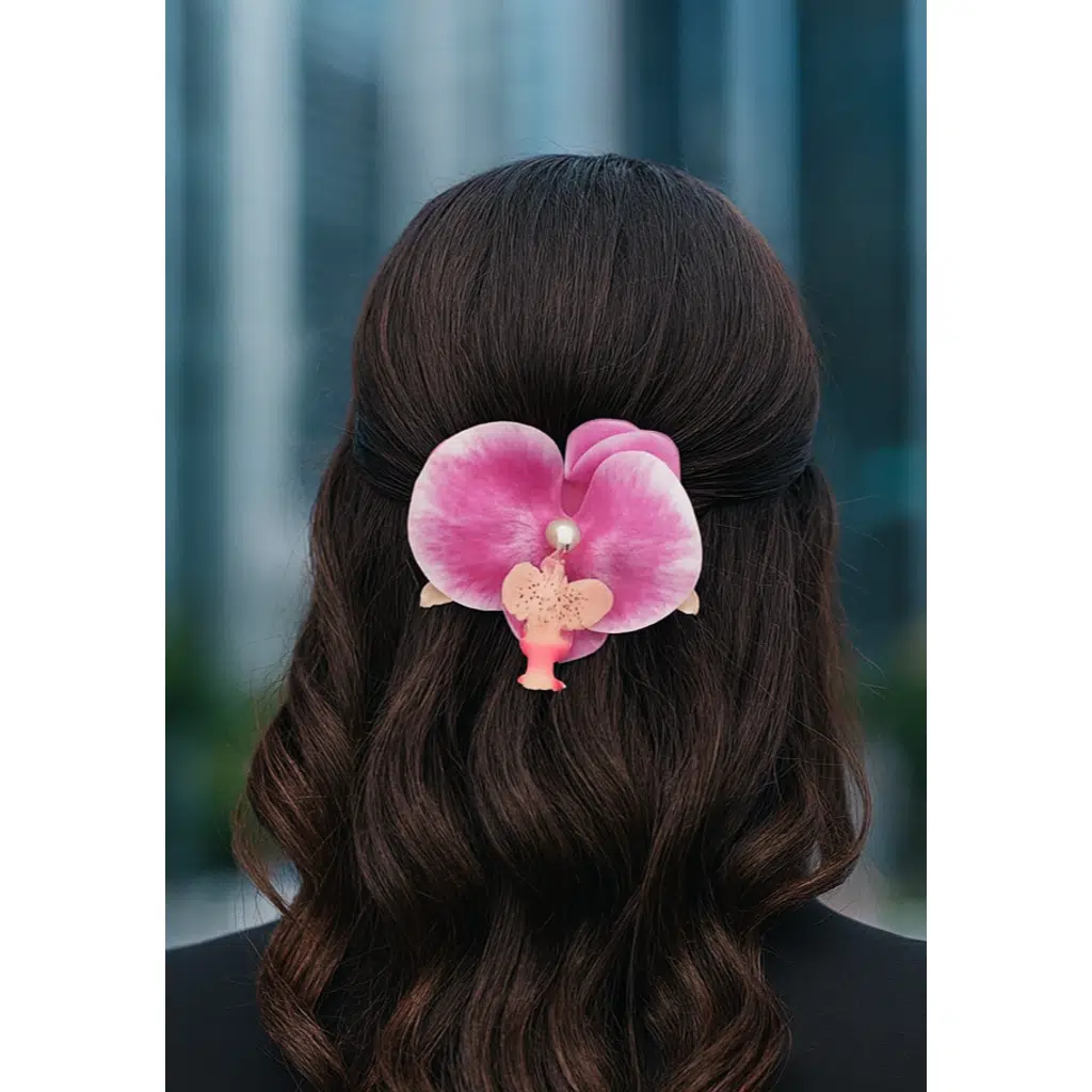Orkide Çiçeği İncili Mandal Toka 10 cm Çift Taraflı 1 adet