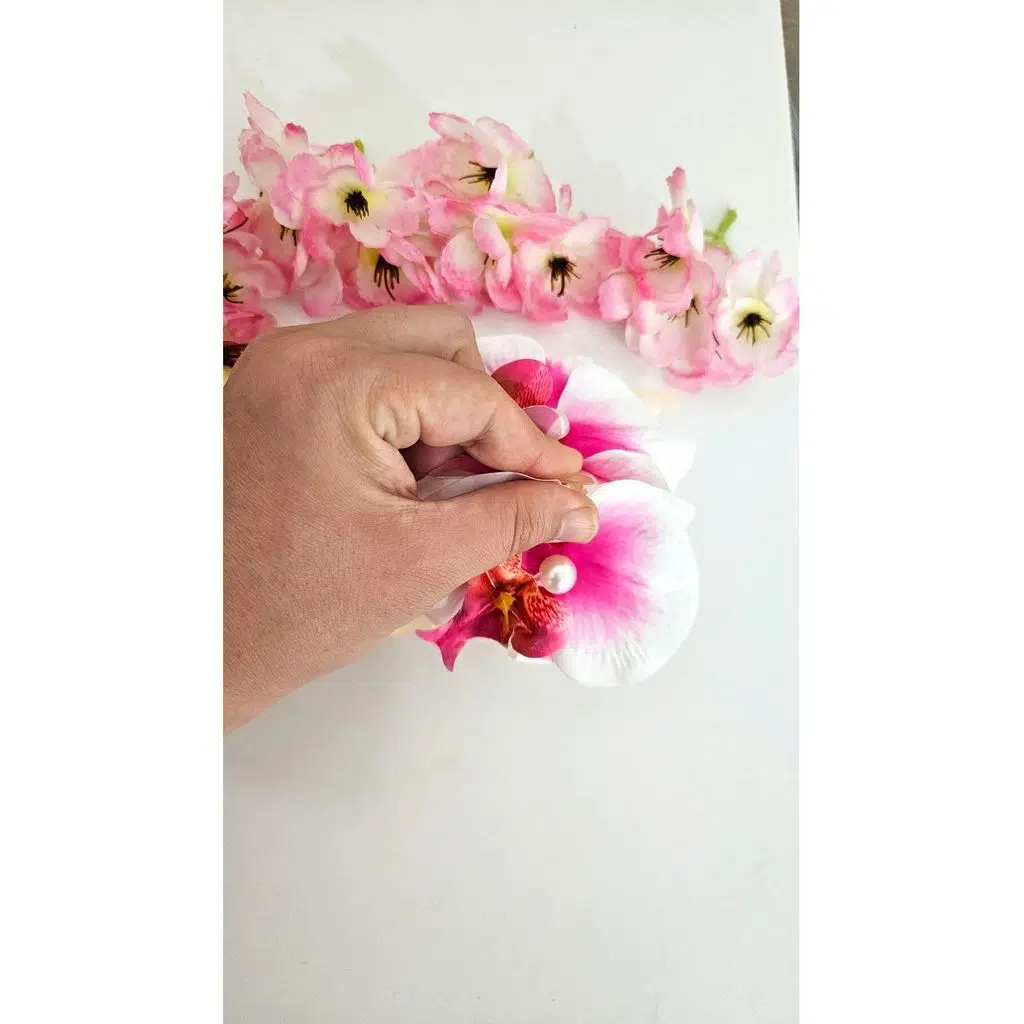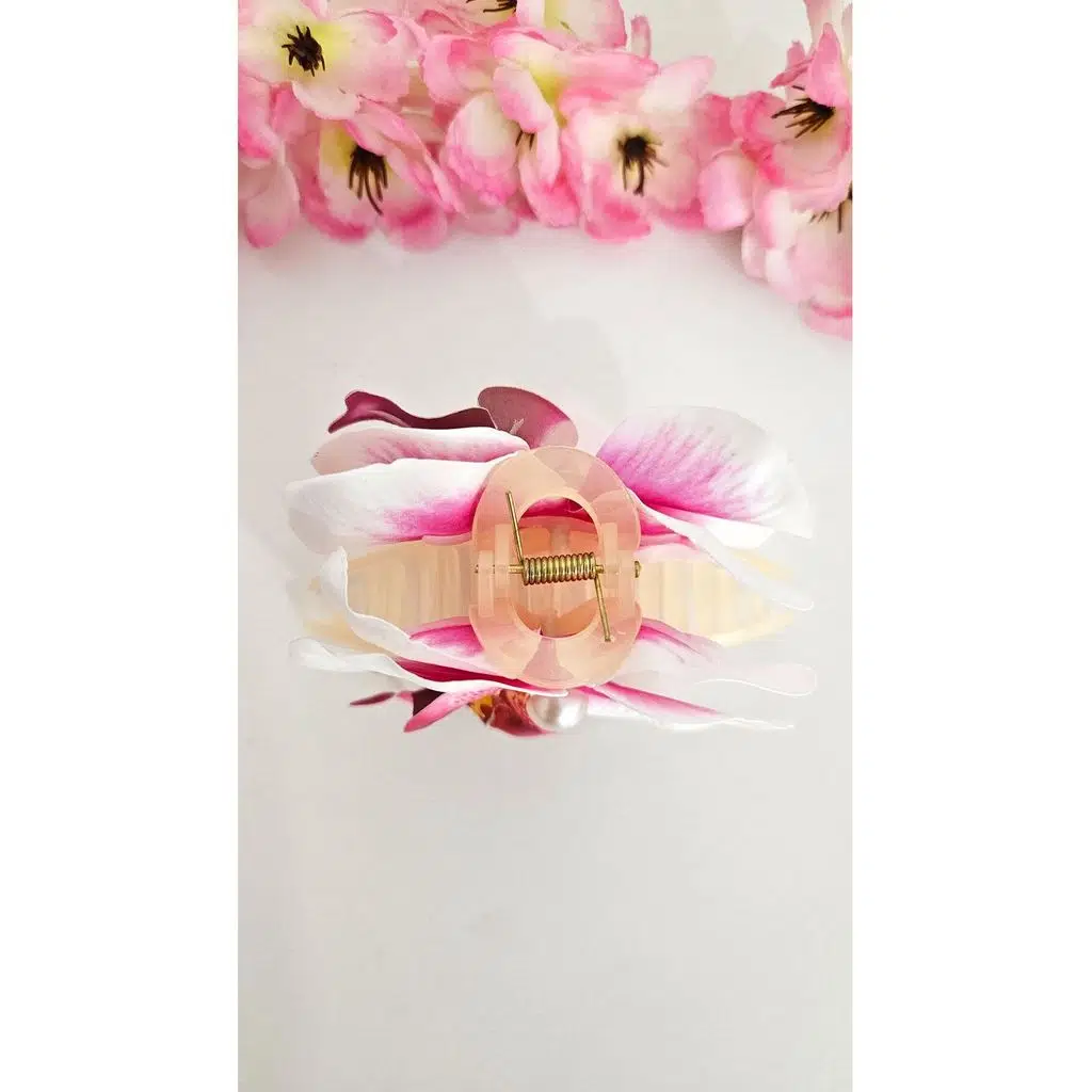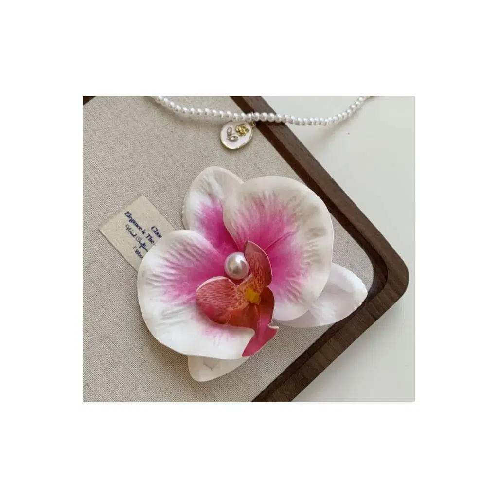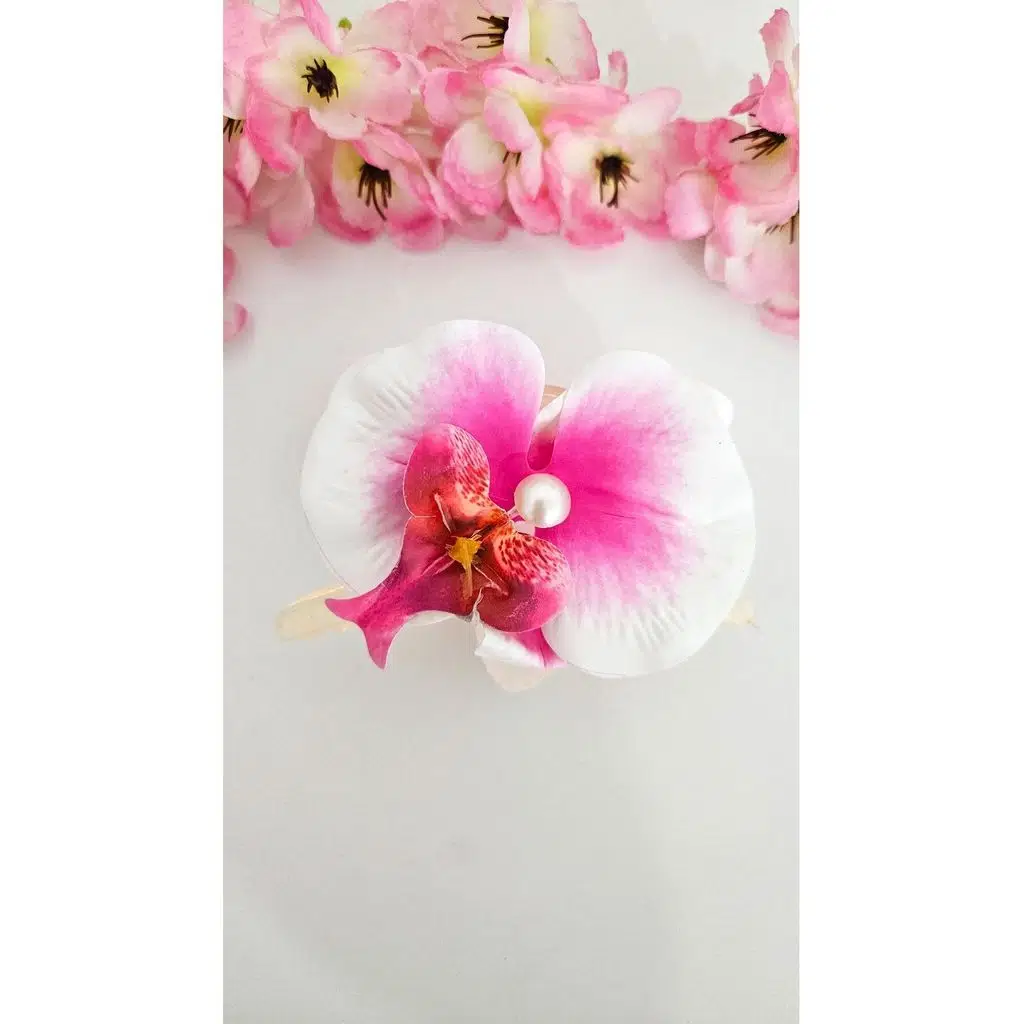 Orkide Çiçeği İncili Mandal Toka 10 cm Çift Taraflı 1 adet