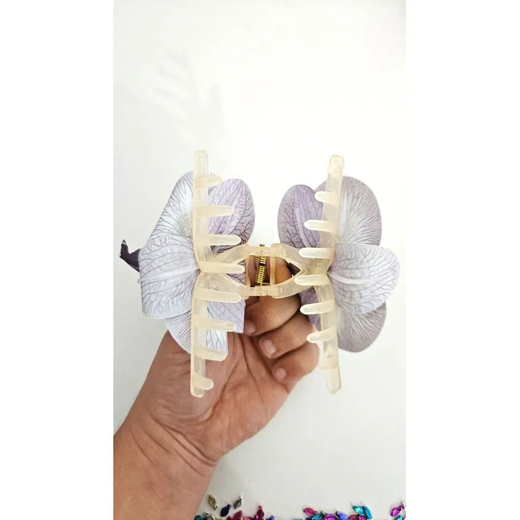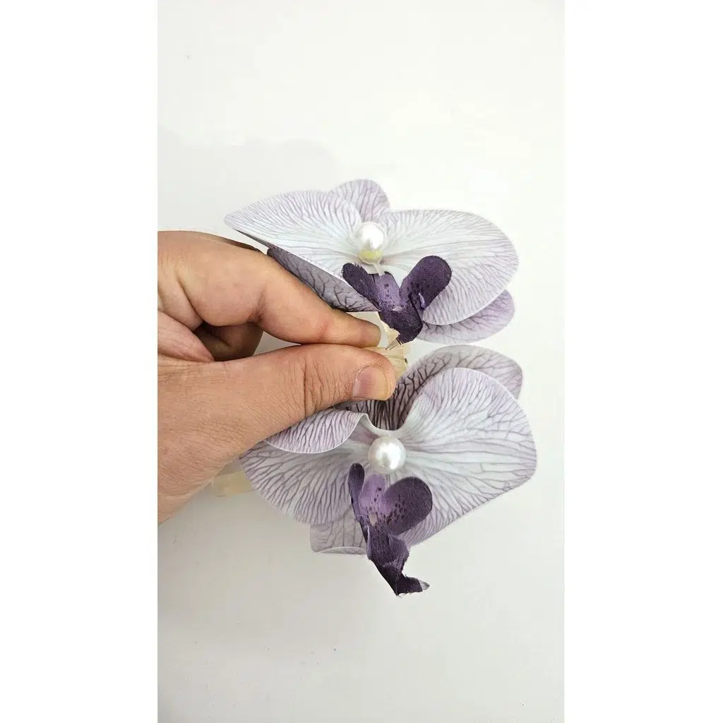 Orkide Çiçeği İncili Mandal Toka 10 cm Çift Taraflı 1 adet