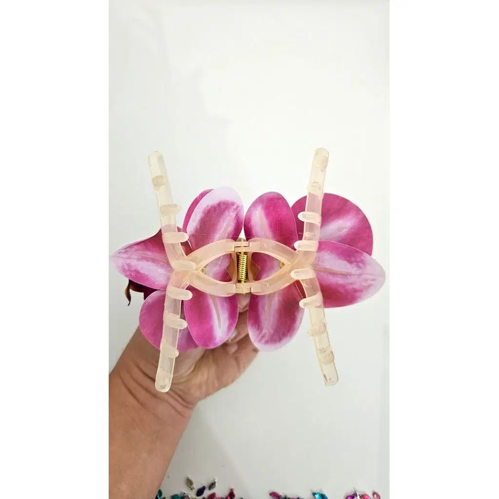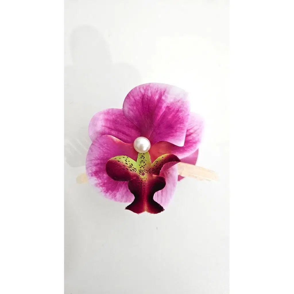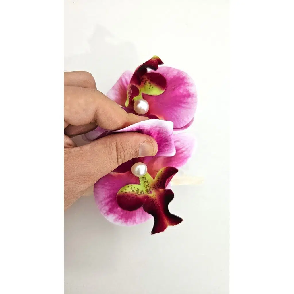 Orkide Çiçeği İncili Mandal Toka 10 cm Çift Taraflı 1 adet