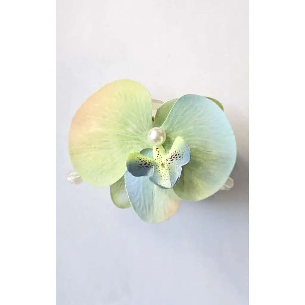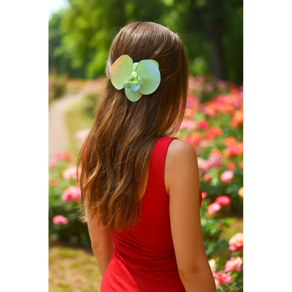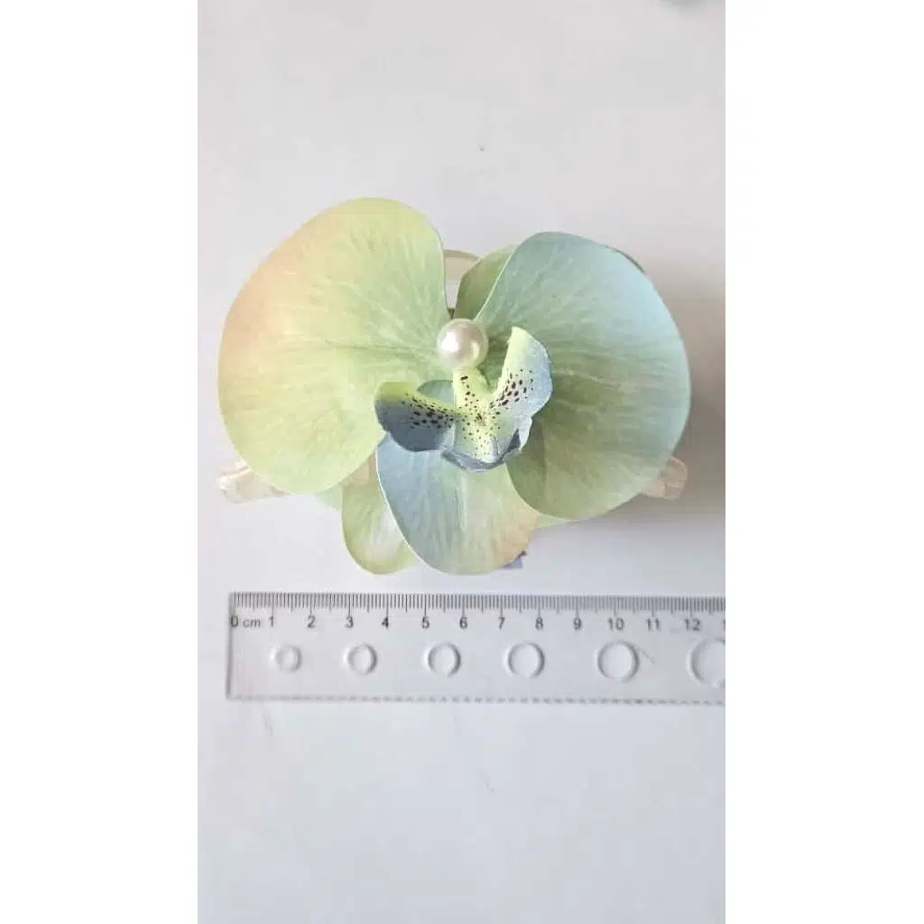 Orkide Çiçeği İncili Su Yeşili Renk Mandal Toka 10 cm Çift Taraflı 1 adet