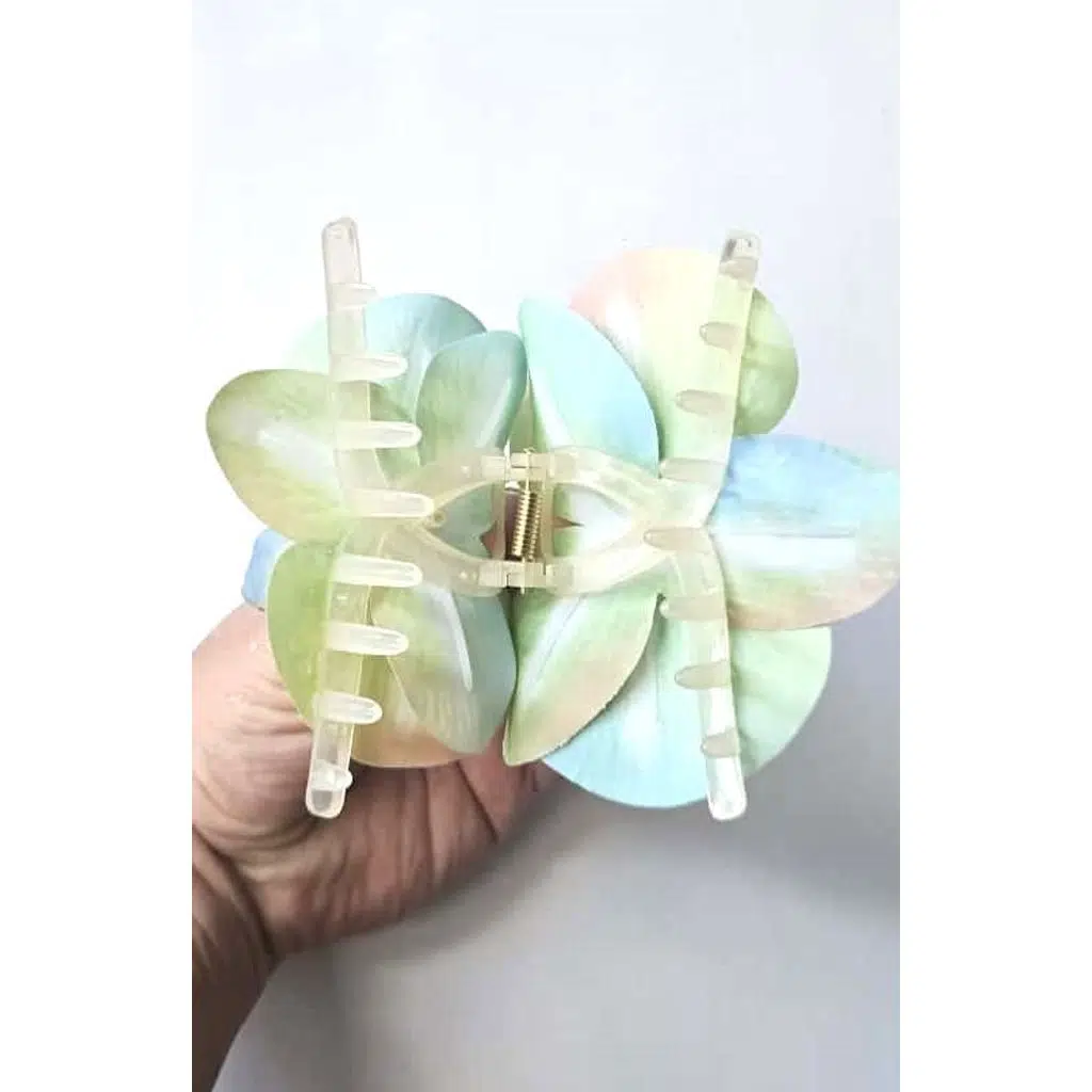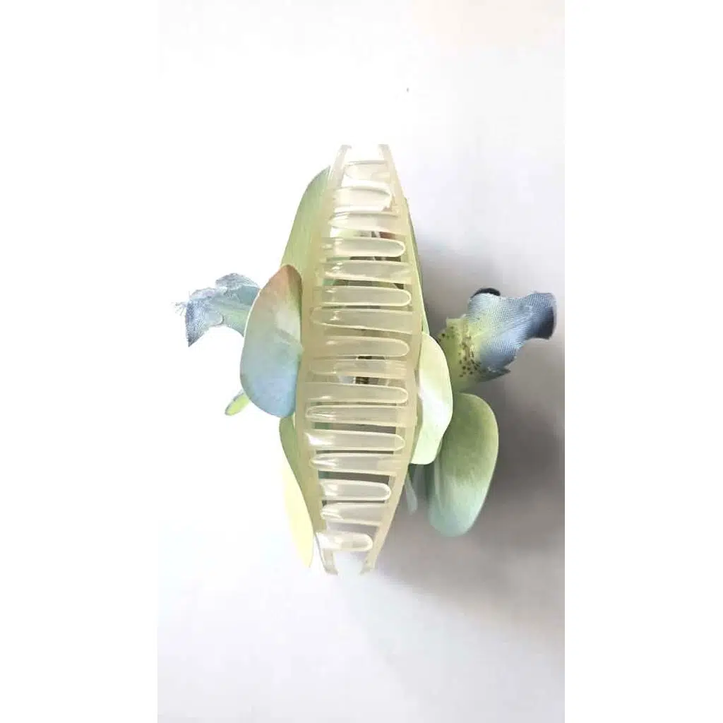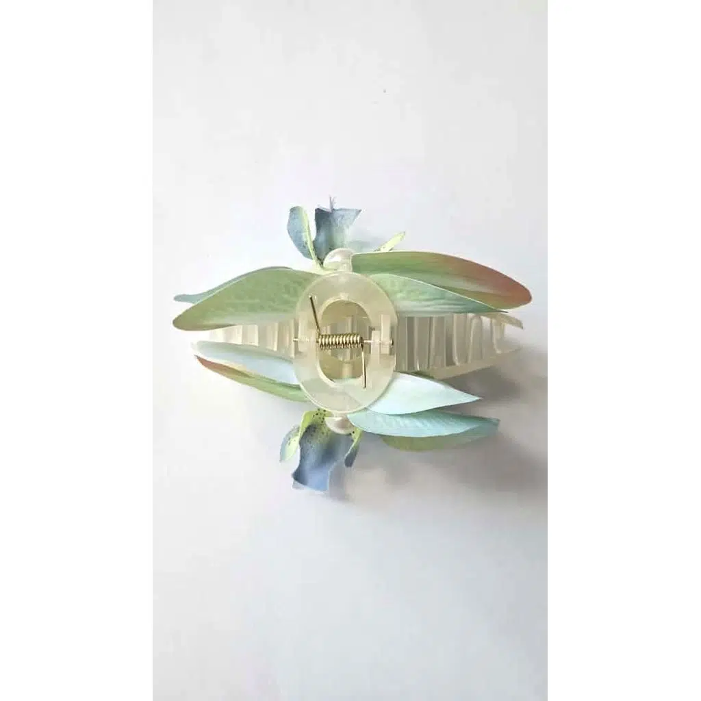 Orkide Çiçeği İncili Su Yeşili Renk Mandal Toka 10 cm Çift Taraflı 1 adet