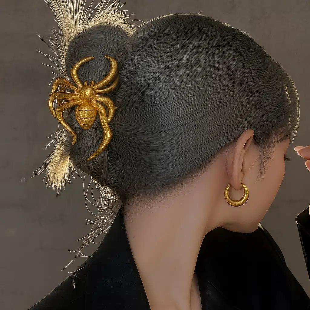 Örümcek Tasarımlı Metal Mandal Saç Tokası, özgün formu ve parlak metal dokusuyla dikkat çeken bir saç aksesuarıdır. Modern, cesur ve sıra dışı tarzıyla hem günlük hem de özel kombinlerinize karakter katar.