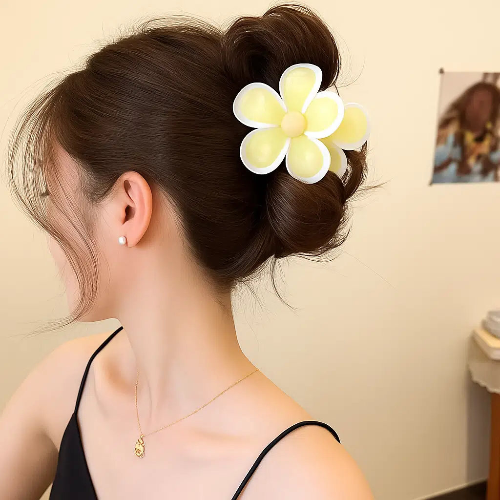 Papatya Model Sarı Renk 7 cm Mandal Saç Tokası – Şık ve Dayanıklı