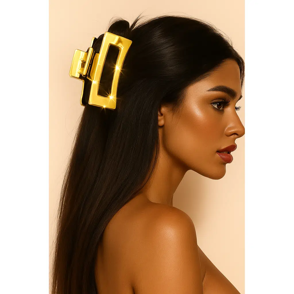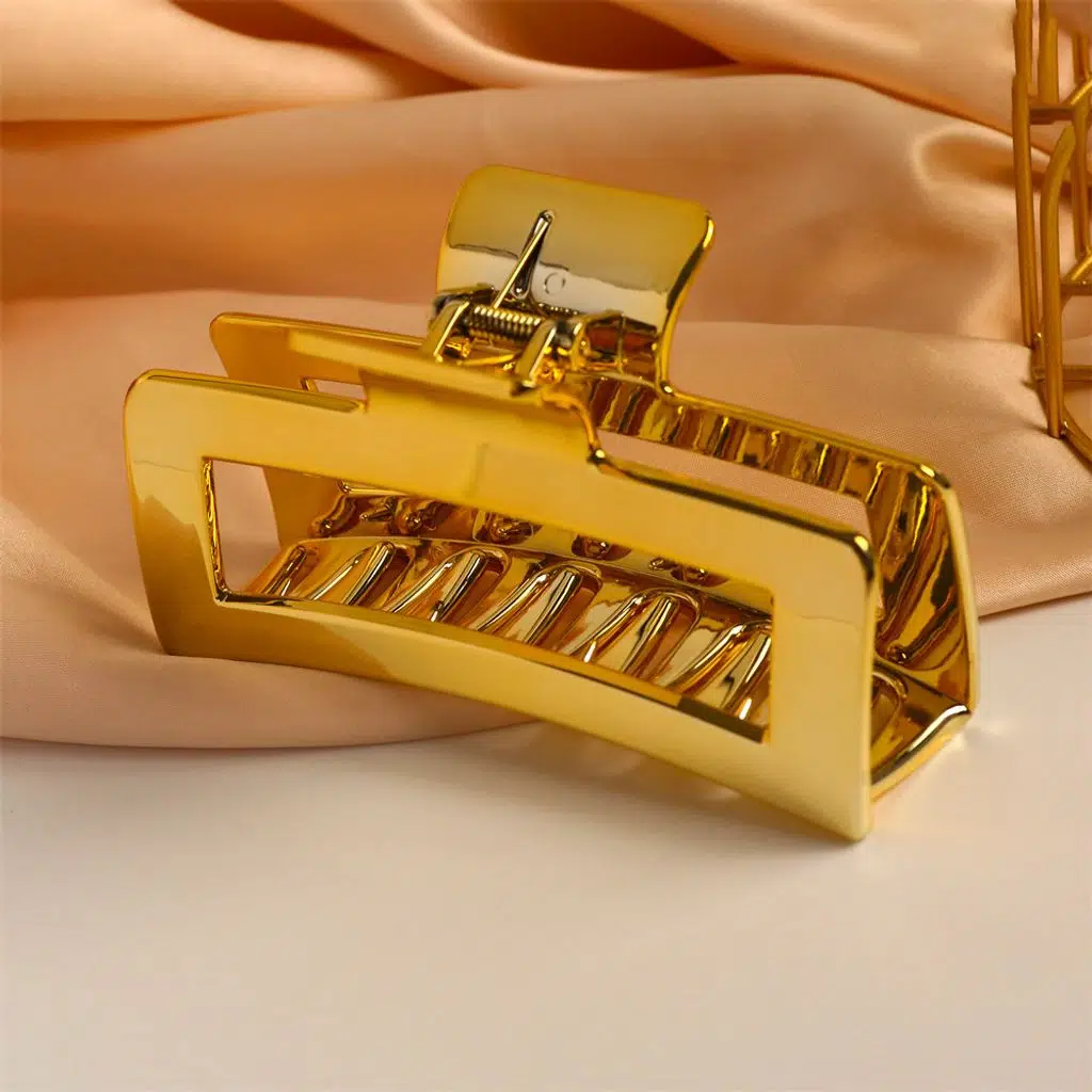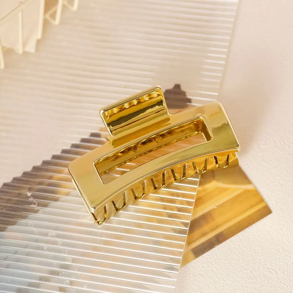 Saçlarınızı toplarken hem zarif hem de modern görünmek istiyorsanız, bu parlak altın renk dikdörtgen mandal toka tam size göre!