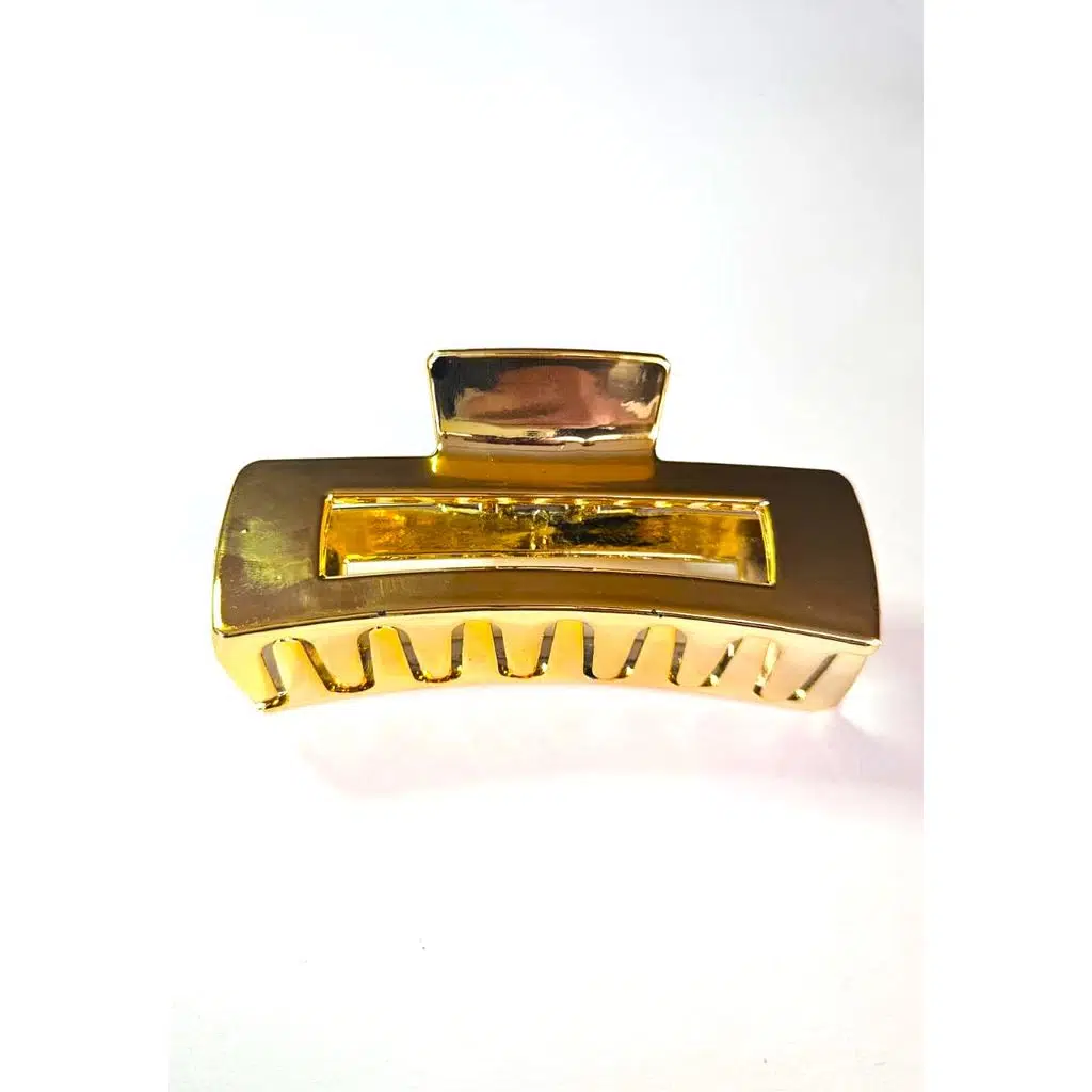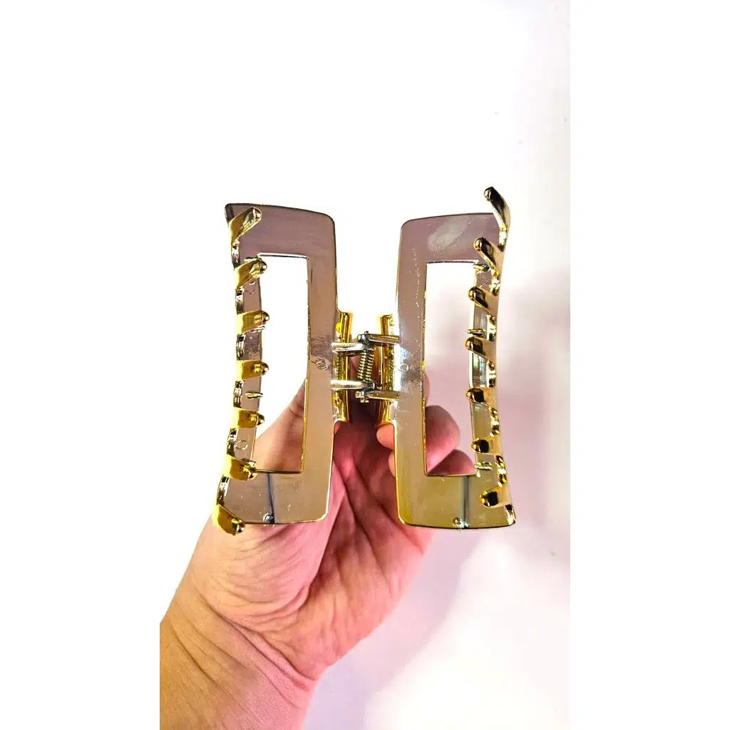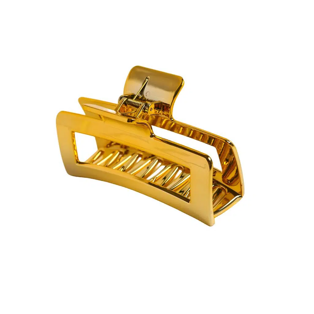Saçlarınızı toplarken hem zarif hem de modern görünmek istiyorsanız, bu parlak altın renk dikdörtgen mandal toka tam size göre!