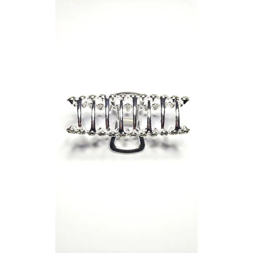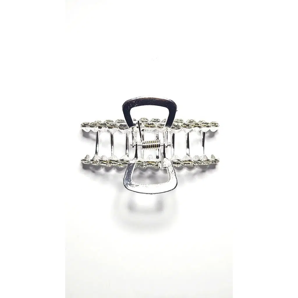 Parlak Taşlı Gümüş Renk 7 cm Metal Mandal Saç Tokası – Şık ve Dayanıklı Saç Aksesuarı