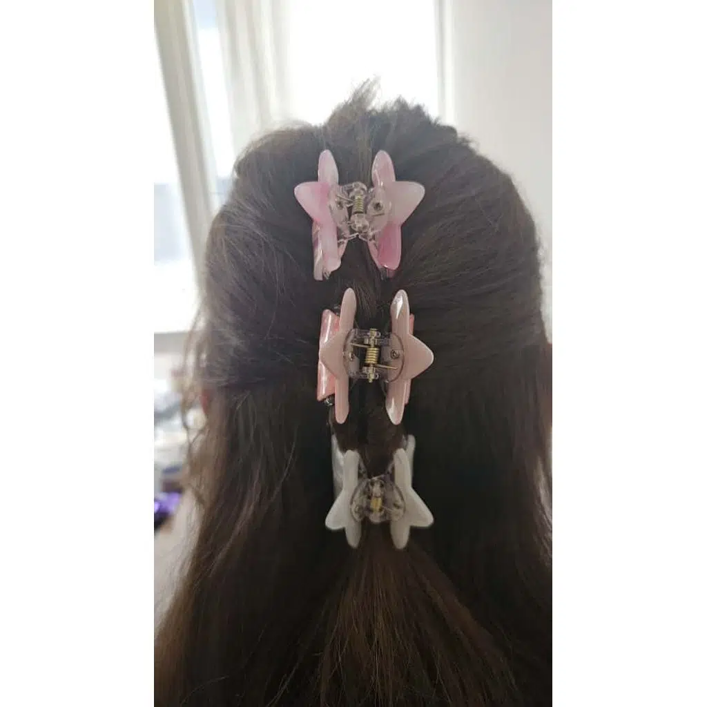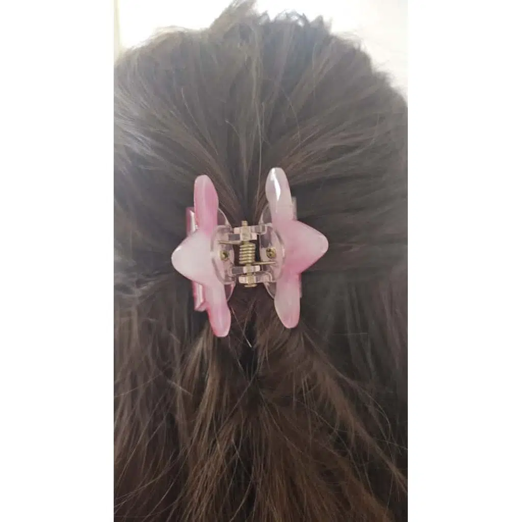 Pembe-Beyaz Degrade Renk Yıldız Model Kemik Mandal Toka 4 cm Küçük Boy