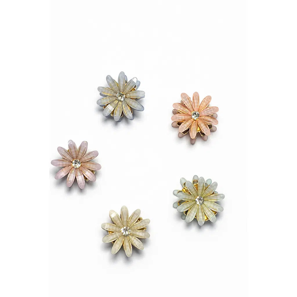 Pembe Çiçek Model Kristal Detaylı Mini Saç Tokası 2,5 cm, zarif çiçek formu ve parlayan taş detaylarıyla saçlarınıza zarafet katar. Işıltılı kristal merkez süslemesi ve yarı saydam yaprak tasarımıyla hem romantik hem modern bir görünüm sunar.