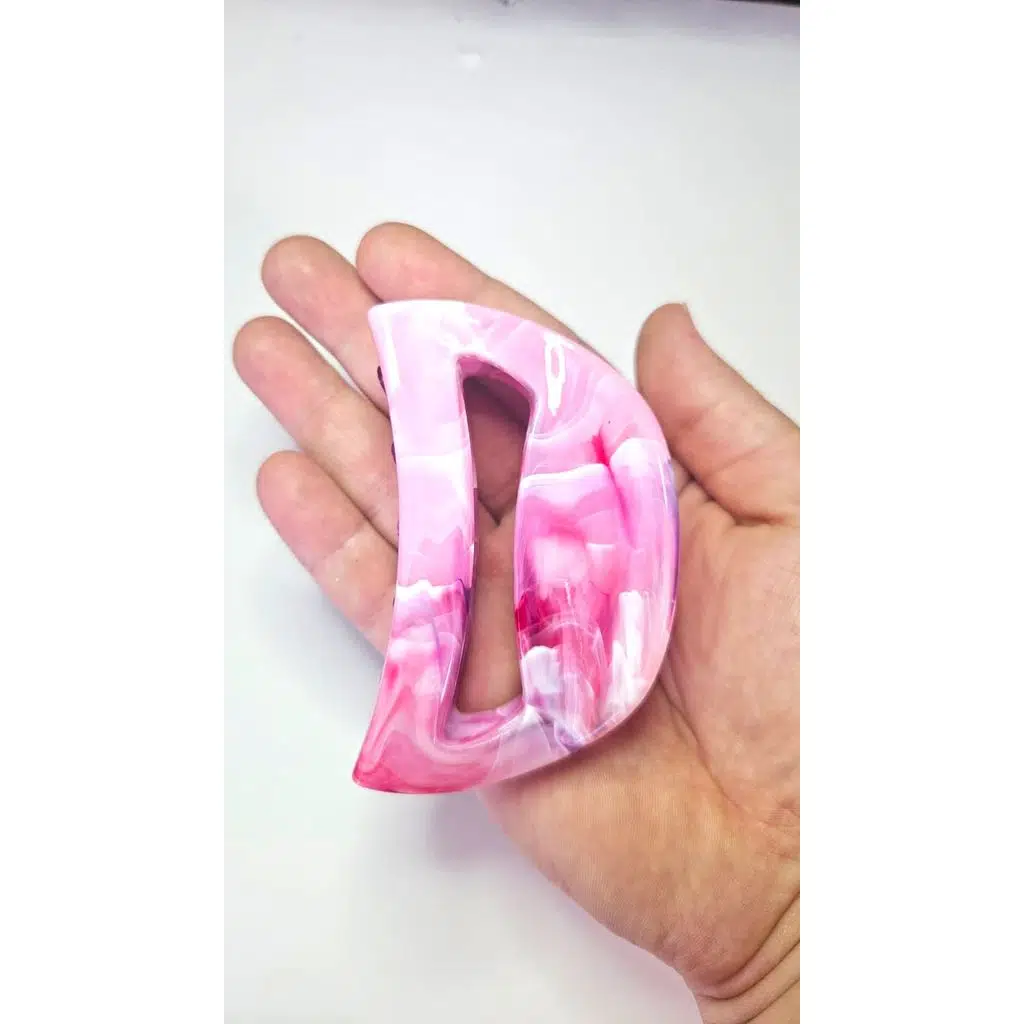 Pembe mermer desenli büyük boy mandal saç tokası, hem şık görünümü hem de güçlü tutuşu ile saçlarınızı gün boyu sabit tutar. Topuz, atkuyruğu veya yarım toplu saç modelleri için idealdir. Kırılmaya dayanıklı kaliteli malzemeden üretilmiştir. Hafif yapısı sayesinde saçınızı sıkmadan konforlu kullanım sunar.