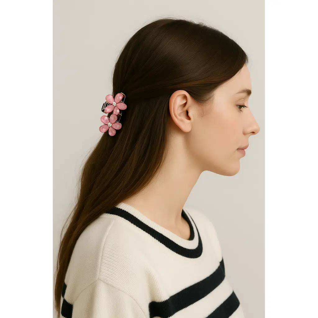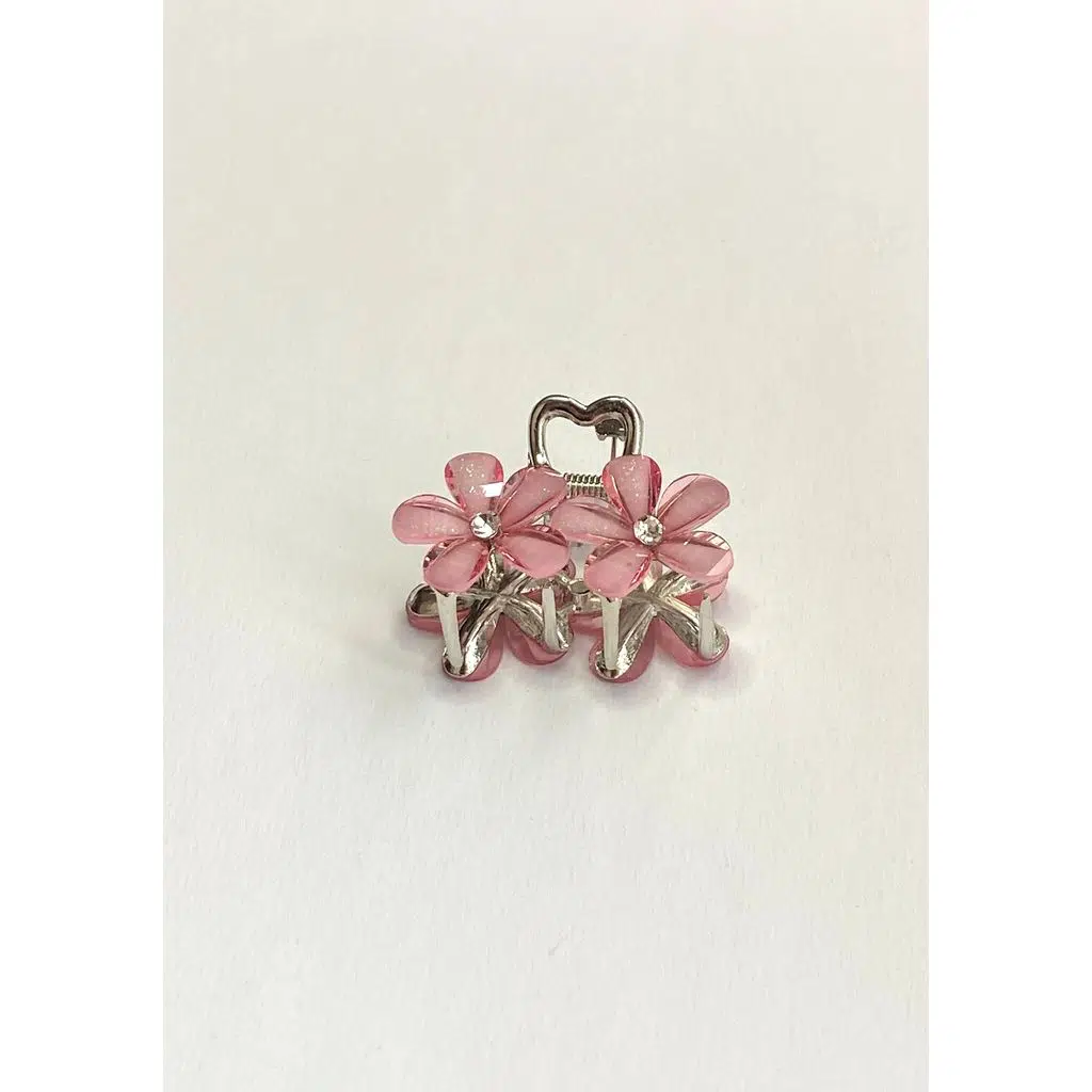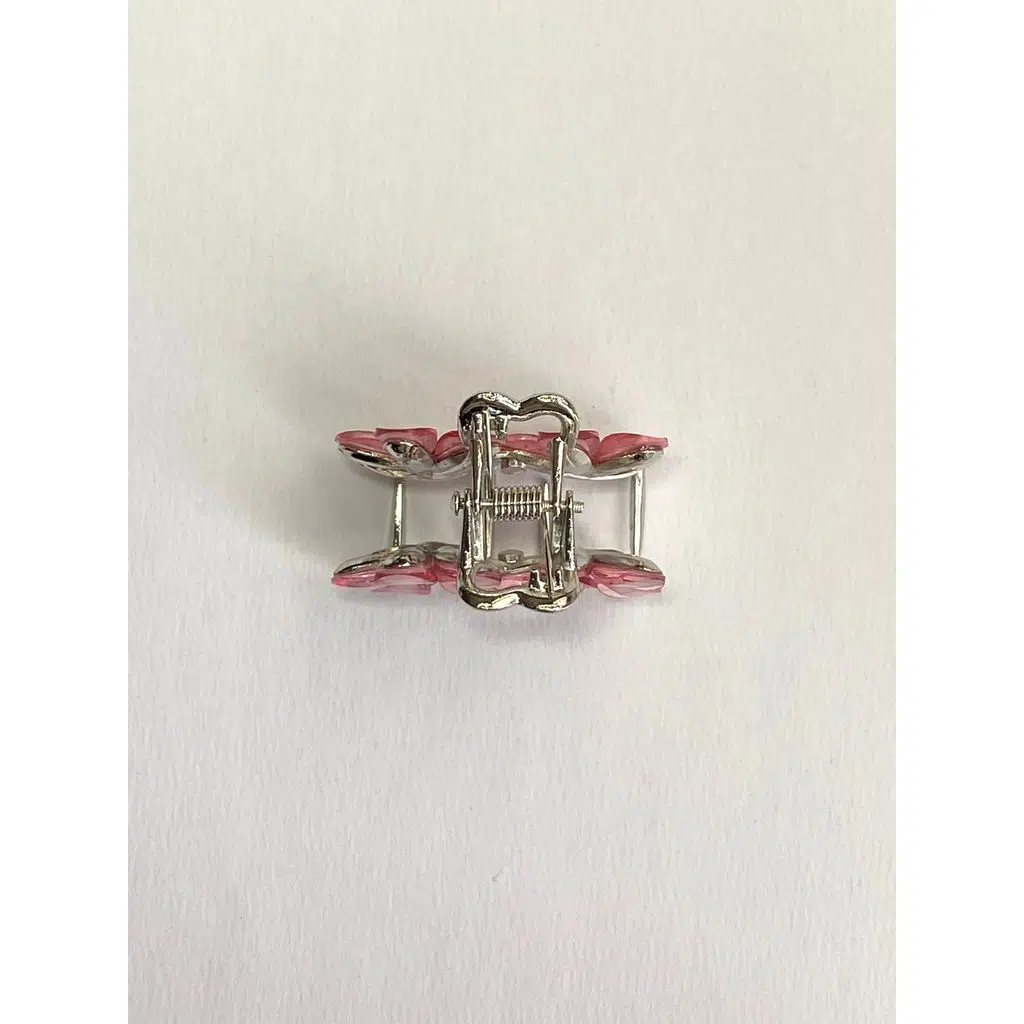 Pembe Taşlı Çiçek Metal Mandal Toka 4 cm