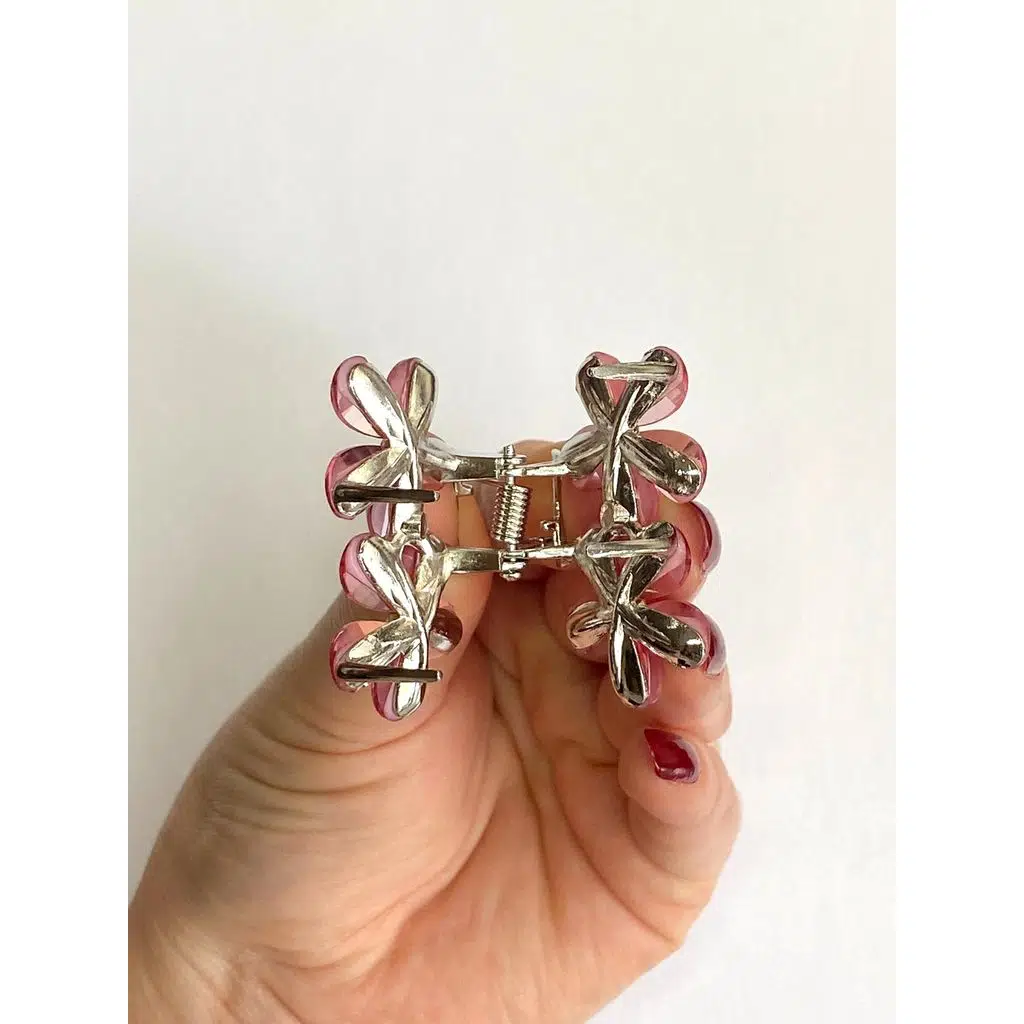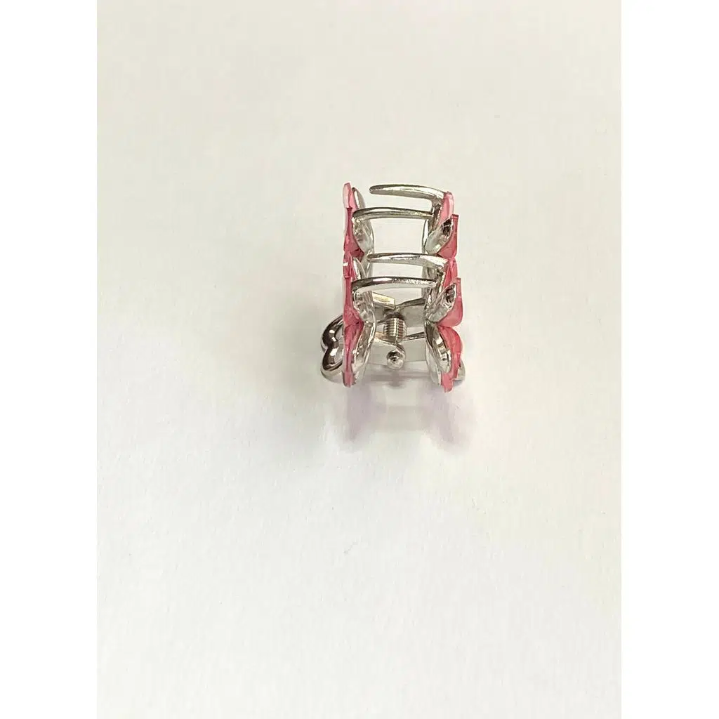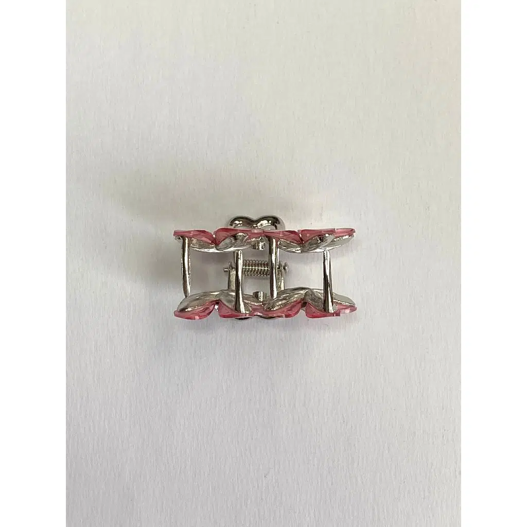 Pembe Taşlı Çiçek Metal Mandal Toka 4 cm