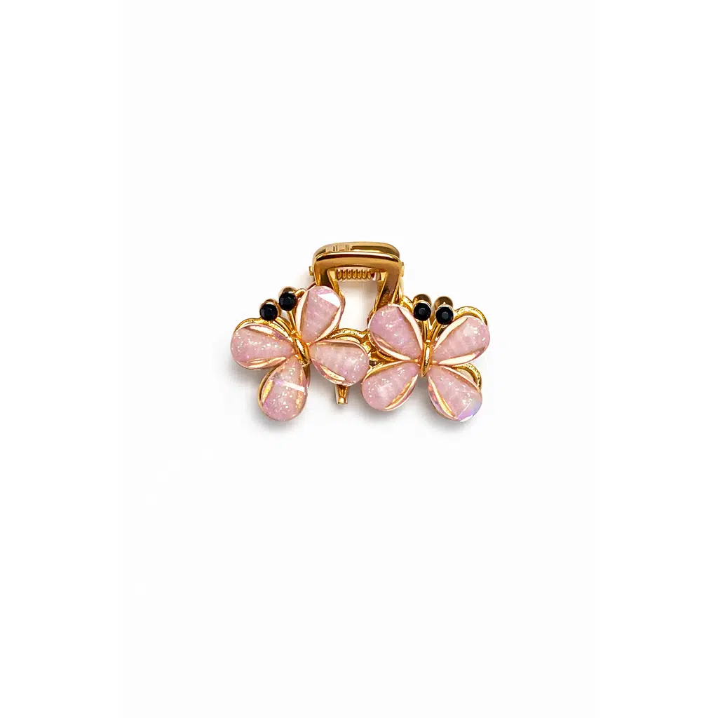 4 cm Pudra Pembe İnci Görünümlü Kelebek Formlu Gold Kadın Saç Tokası, göz alıcı sedef parlaklığındaki kanat detayları ve gold çerçevesiyle şık bir görünüm sunar. El işçiliği taş detayları, ışığı zarifçe yansıtarak hem gündüz hem gece kombinlerinde kusursuz bir tamamlayıcı olur.