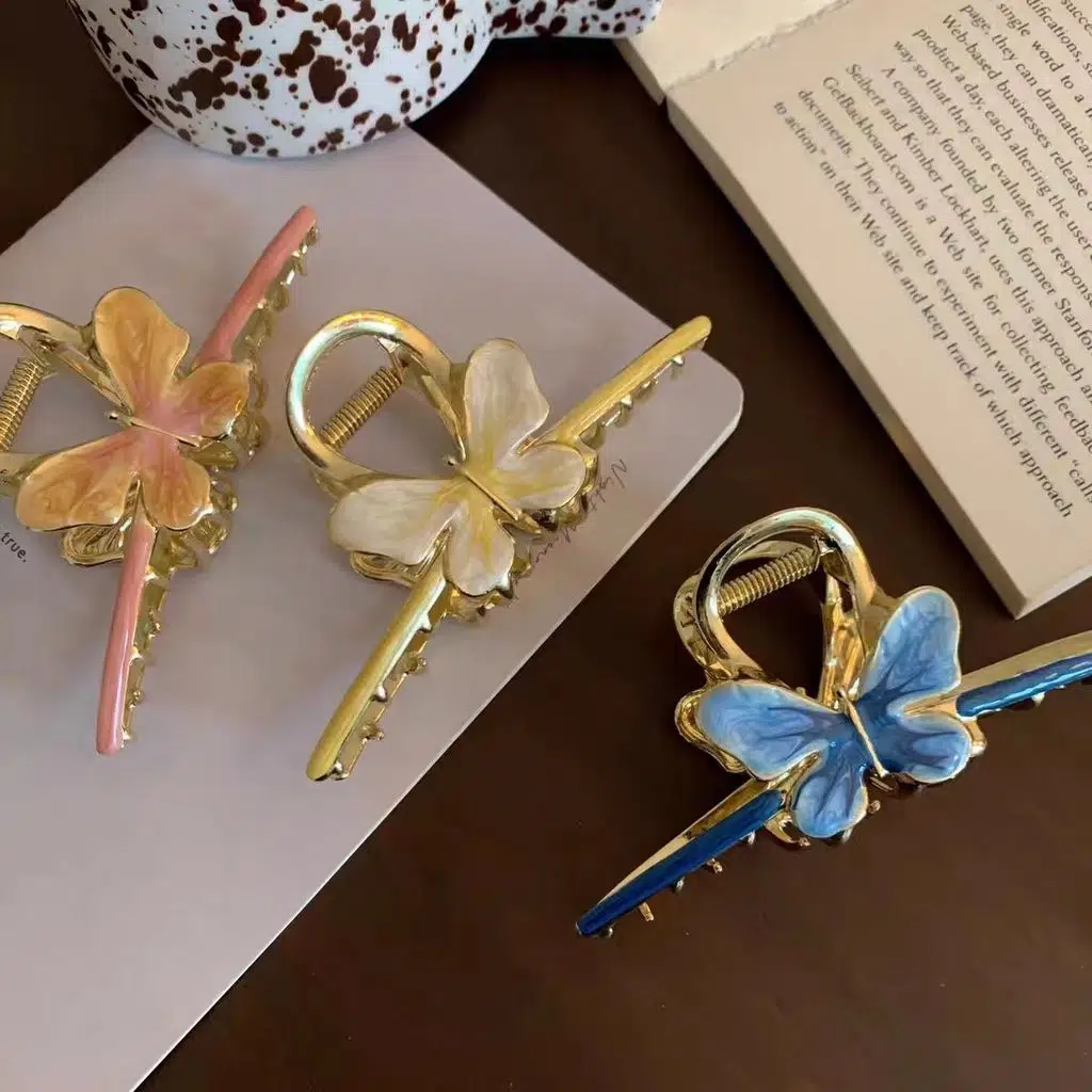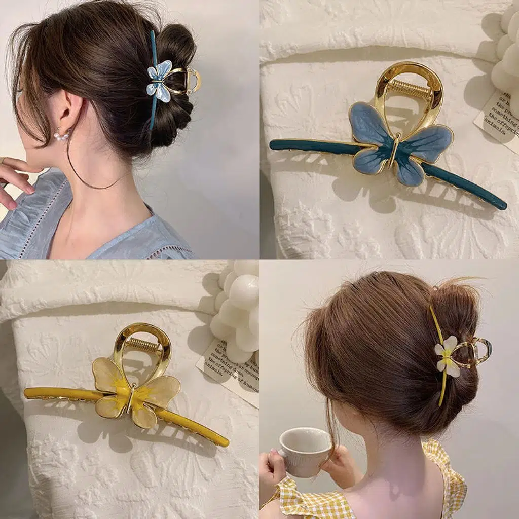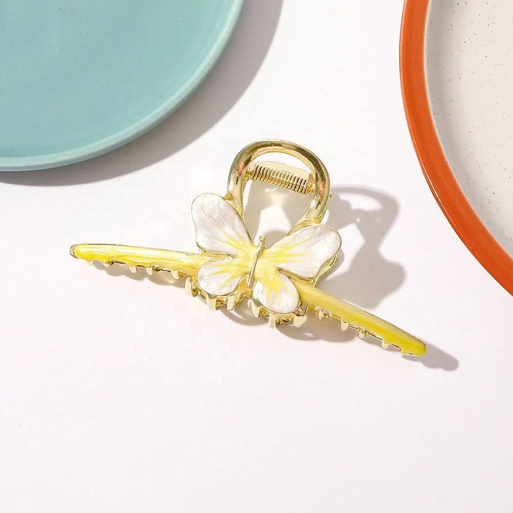 Sarı Kelebek Model Metal Mandal Saç Tokası 11 cm