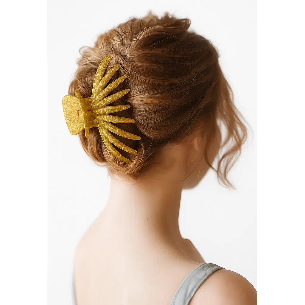 Simli dokusu ve ahtapot model tasarımıyla bu büyük boy mandal toka, hem şık hem de güçlü bir tutuş sağlar.