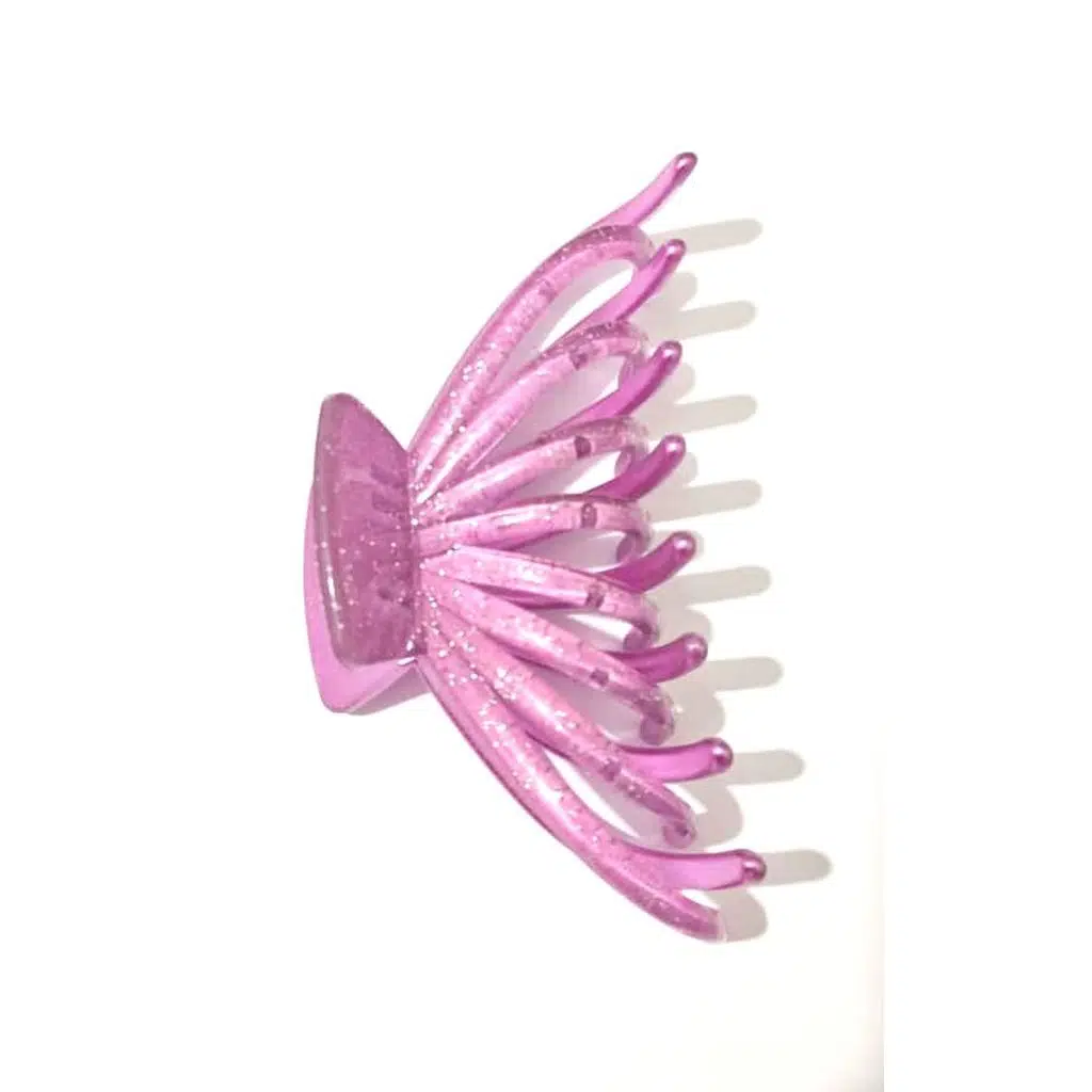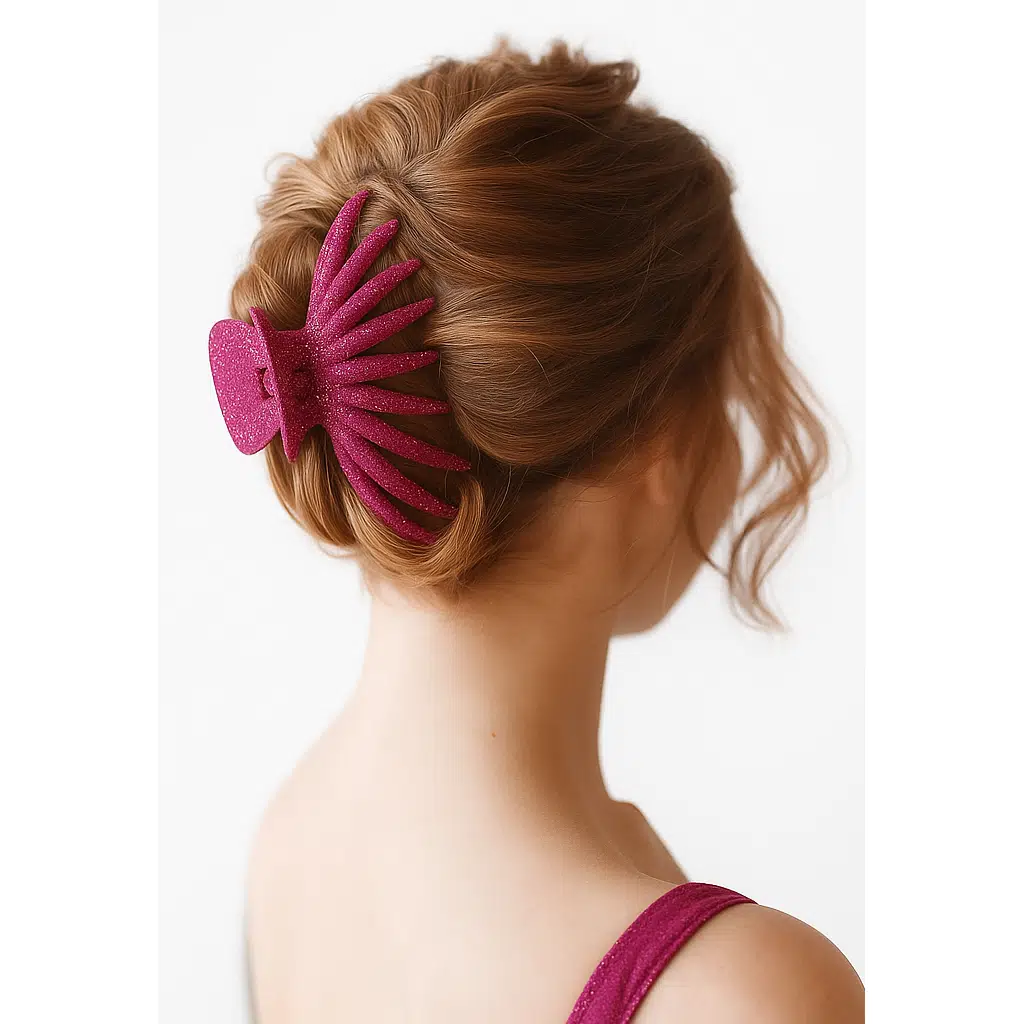 Simli dokusu ve ahtapot model tasarımıyla bu büyük boy mandal toka, hem şık hem de güçlü bir tutuş sağlar.