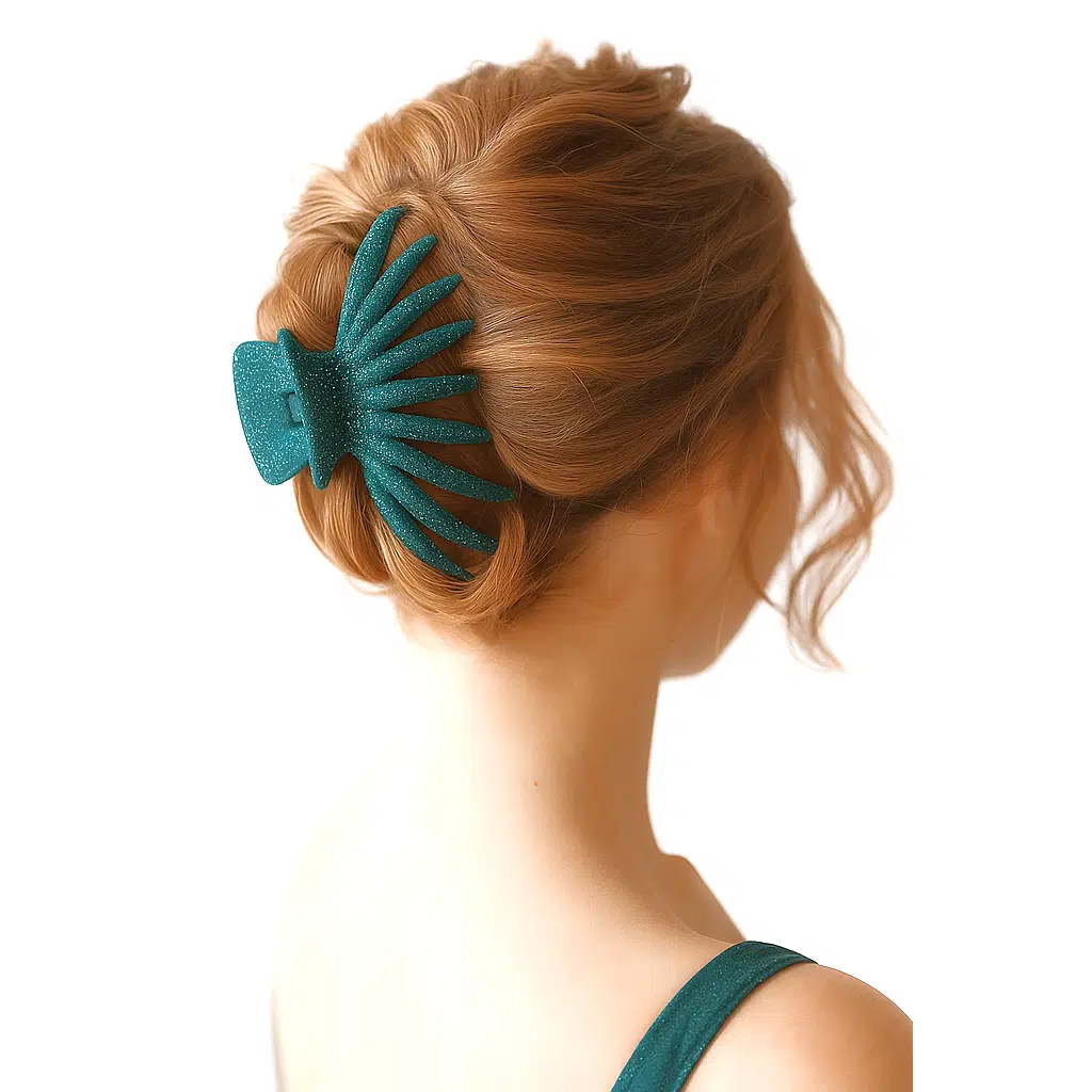 Simli Ahtapot Model Su Yeşili Rengi Mandal Saç Tokası 12 cm Büyük Boy