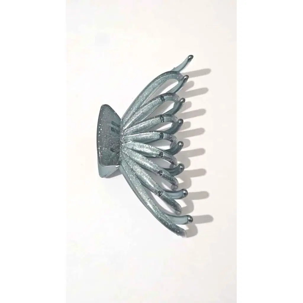 Simli dokusu ve ahtapot model tasarımıyla bu büyük boy mandal toka, hem şık hem de güçlü bir tutuş sağlar.