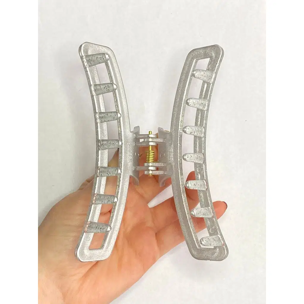 Zarafetiyle göz kamaştıran Simli Eliptik Model Saç Tokası, parlak simli dokusu ve zarif formuyla saçlarınıza modern bir ışıltı katar. 11 cm uzunluğundaki dayanıklı mandal yapısı, saçı güçlü şekilde kavrayarak gün boyu sabit tutar.