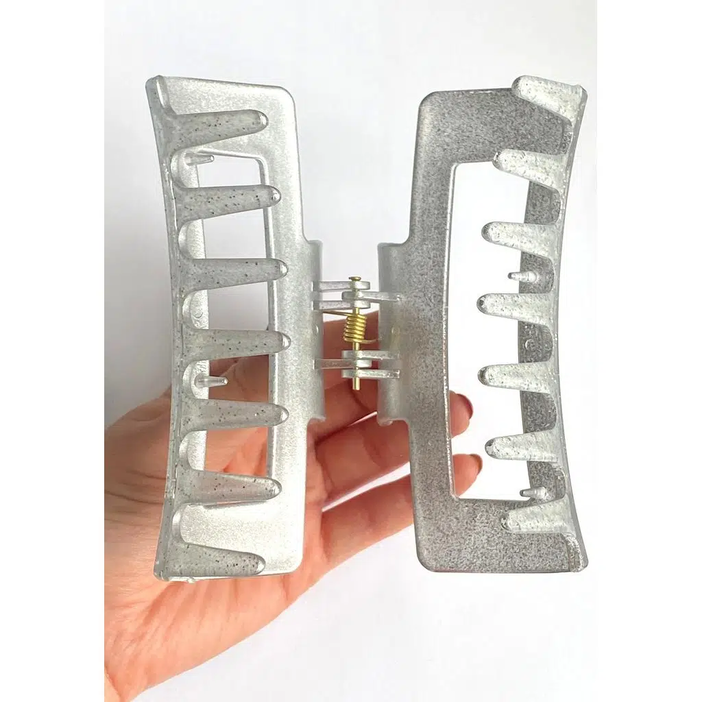 Zarafetiyle göz kamaştıran Simli Mandal Saç Tokası, parlak simli dokusu ve zarif formuyla saçlarınıza modern bir ışıltı katar. 11 cm uzunluğundaki dayanıklı mandal yapısı, saçı güçlü şekilde kavrayarak gün boyu sabit tutar.