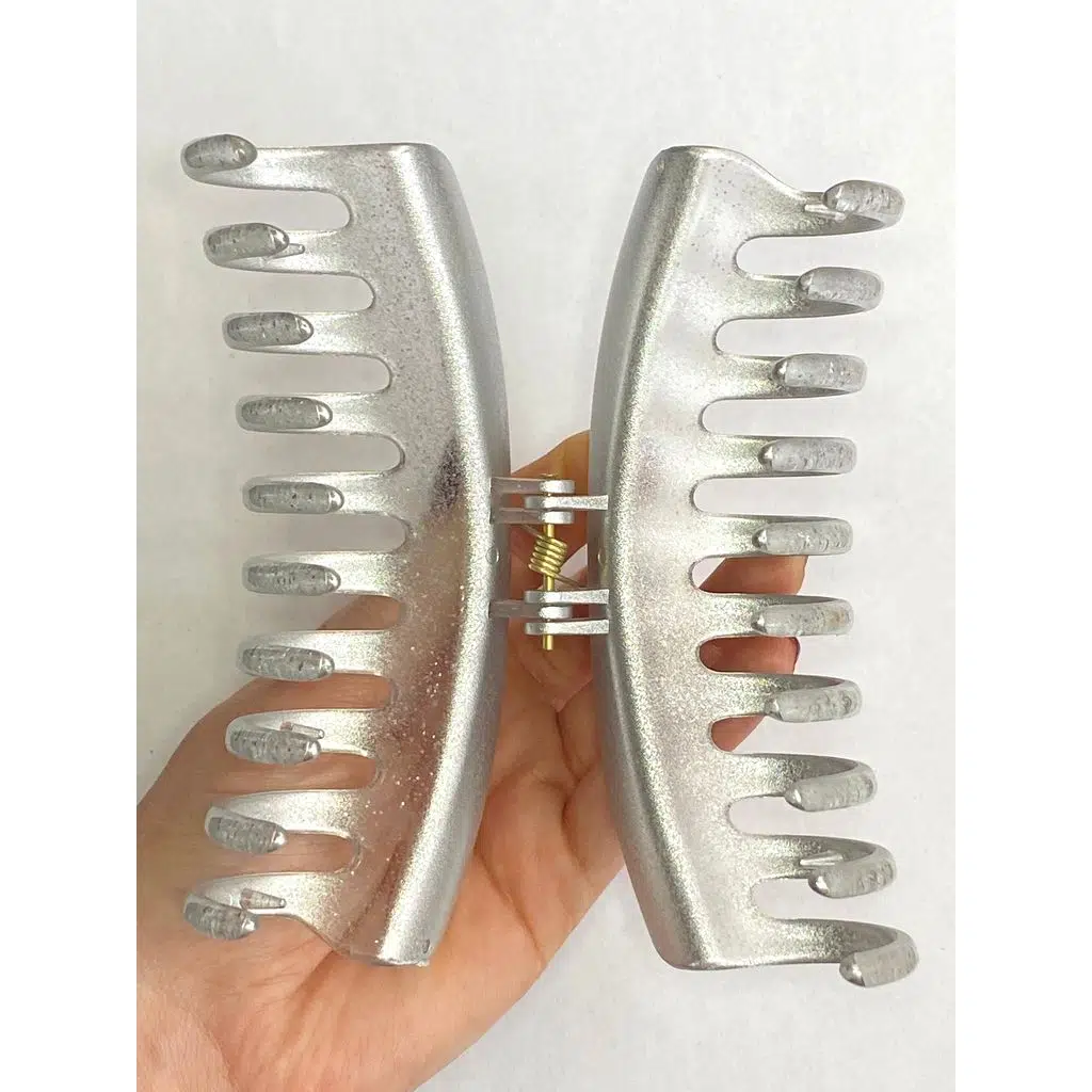 Simli Gri Renk Tırmık Model Mandal Toka 11 cm - Şık ve Dayanıklı