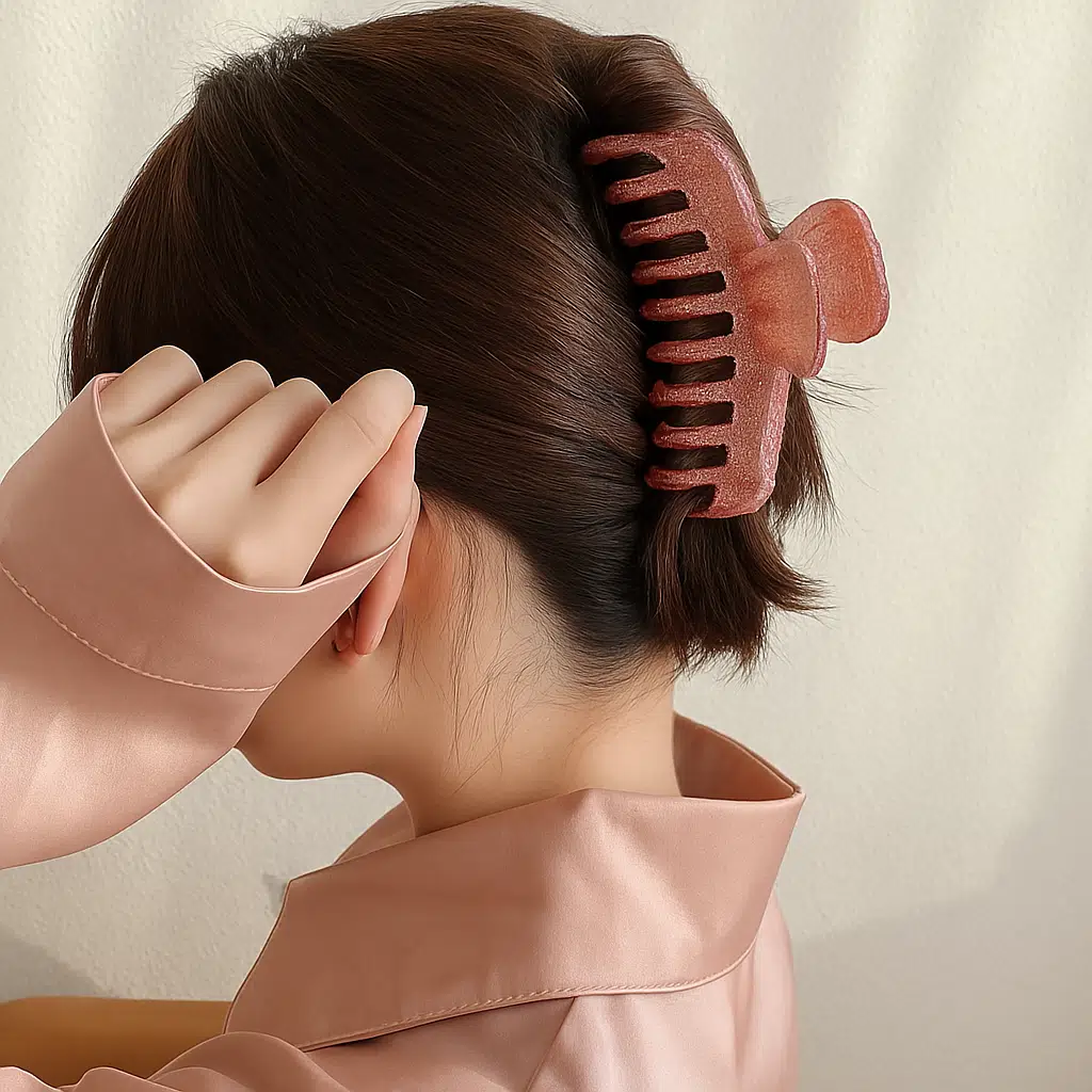 Simli Gül Kurusu Renk Tırmık Model Mandal Toka 11 cm - Şık ve Dayanıklı