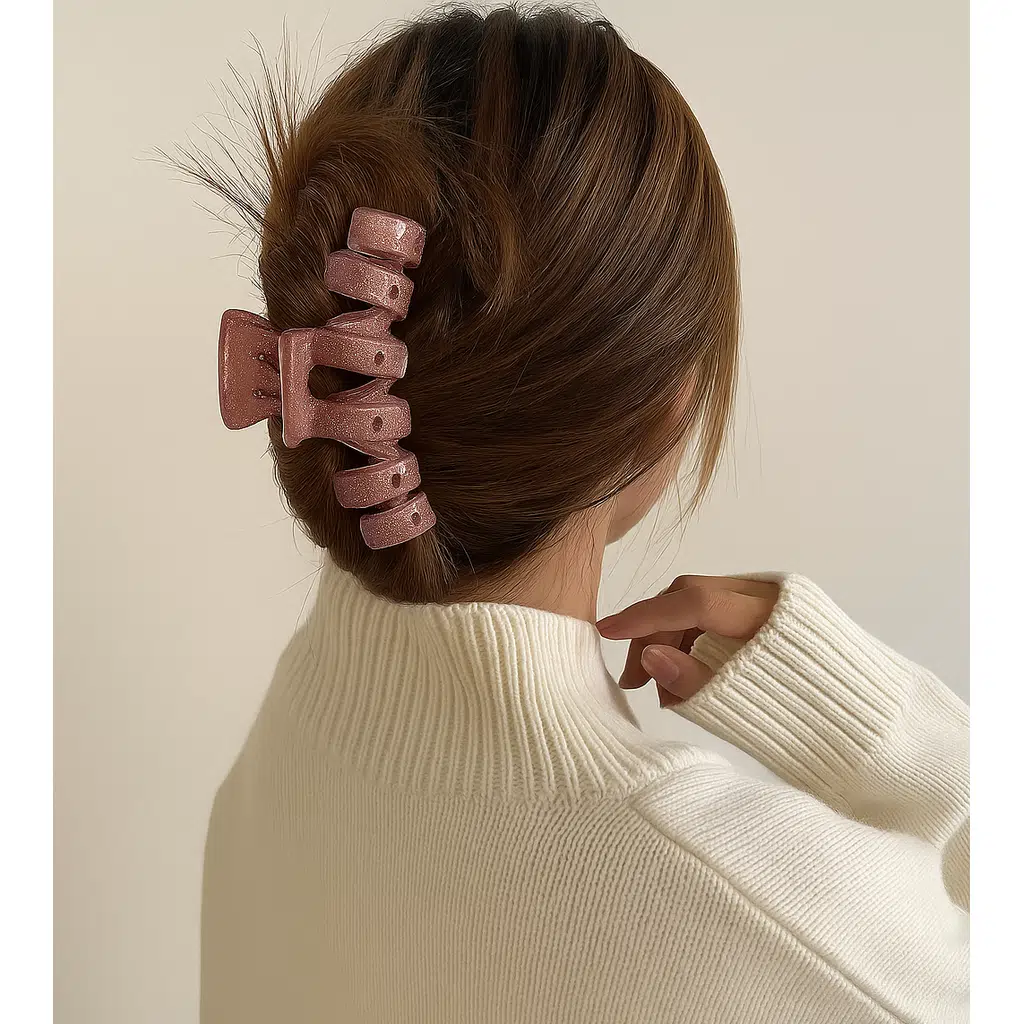 Simli Gül Kurusu Renk Zikzak Model Mandal Toka 11 cm - Şık ve Dayanıklı