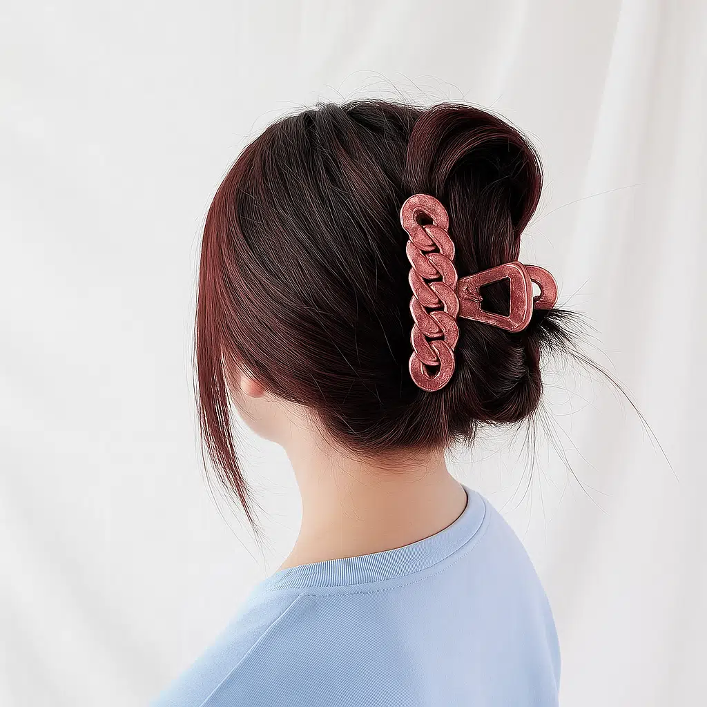 Simli Gül Kurusu Renk Zincir Model Mandal Toka 11 cm - Şık ve Dayanıklı