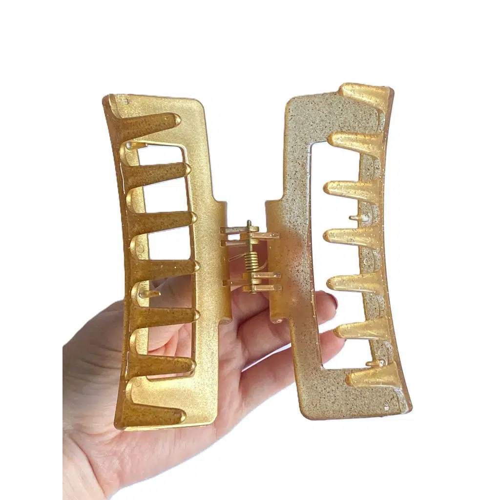 Zarafetiyle göz kamaştıran Simli Mandal Saç Tokası, parlak simli dokusu ve zarif formuyla saçlarınıza modern bir ışıltı katar. 11 cm uzunluğundaki dayanıklı mandal yapısı, saçı güçlü şekilde kavrayarak gün boyu sabit tutar.