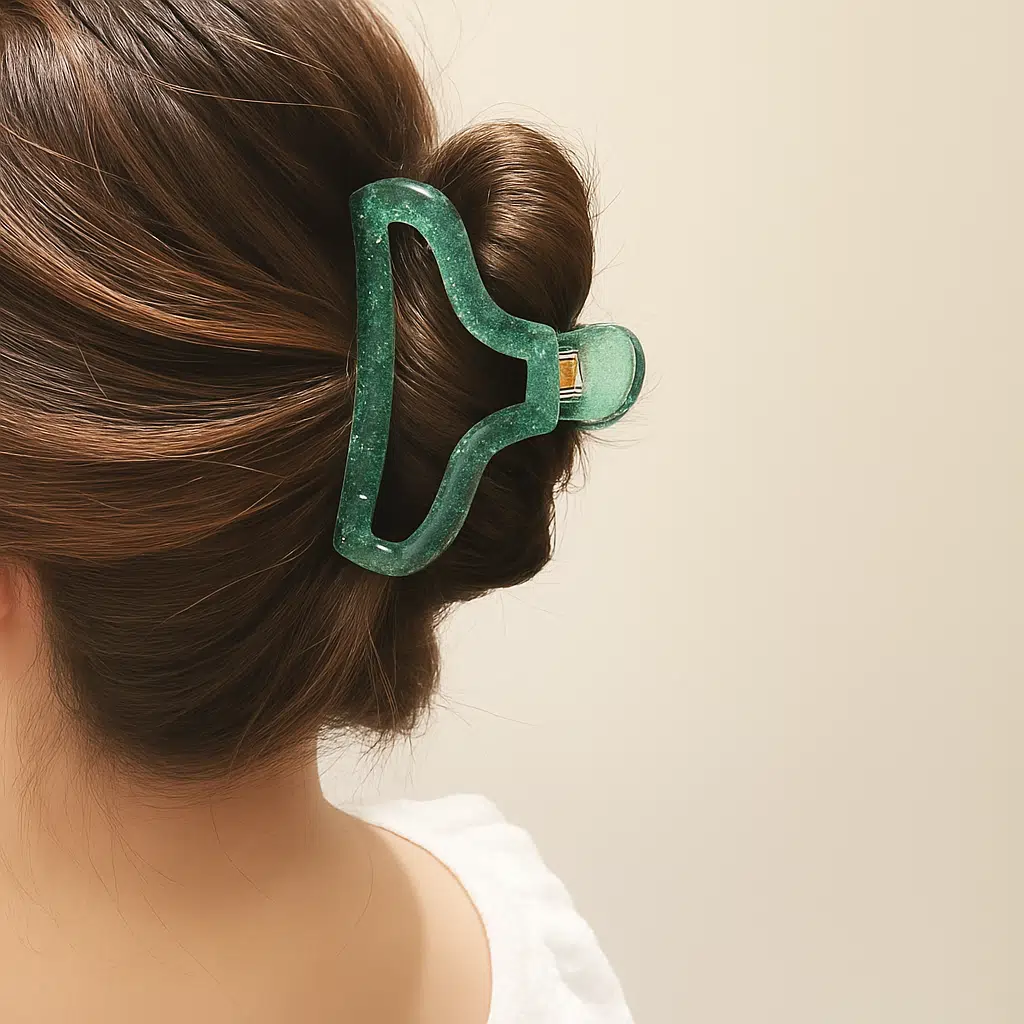 Simli Oval Model Su Yeşili Renk 11 cm Kadın Mandal Saç Tokası - Şık ve Dayanıklı