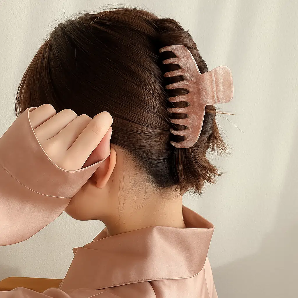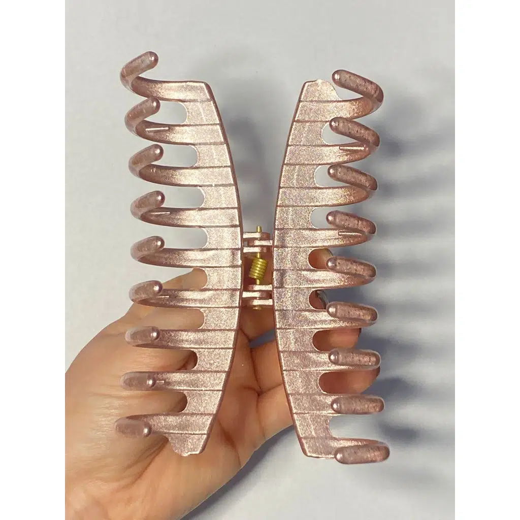 Simli Pudra Pembe Renk Tırmık Model Mandal Toka 11 cm - Şık ve Dayanıklı