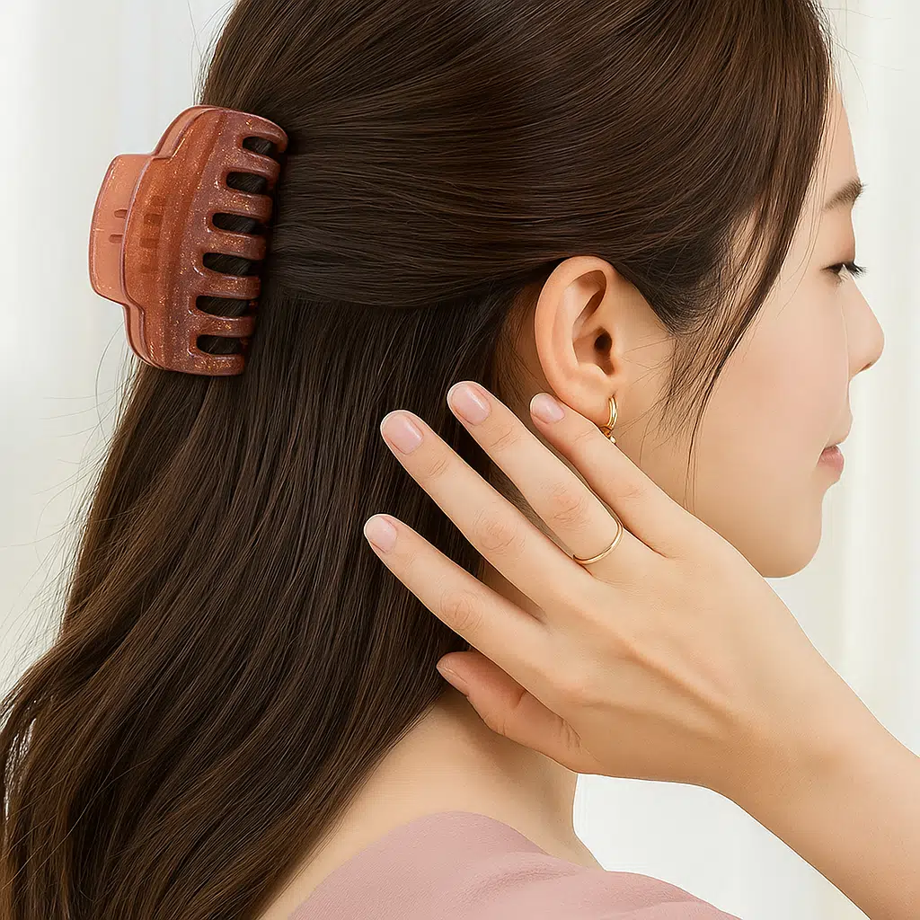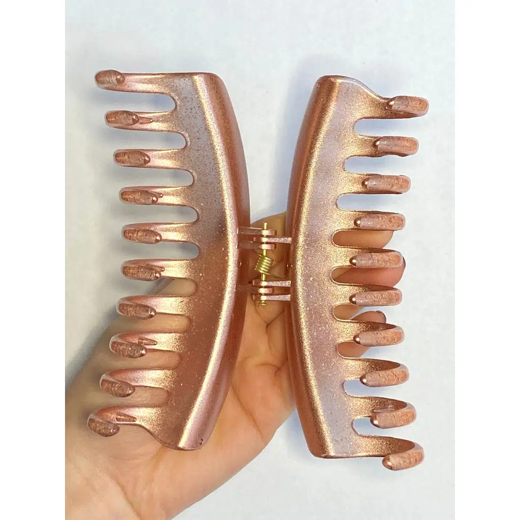 Simli Pudra Pembe Renk Tırmık Model Mandal Toka 11 cm - Şık ve Dayanıklı
