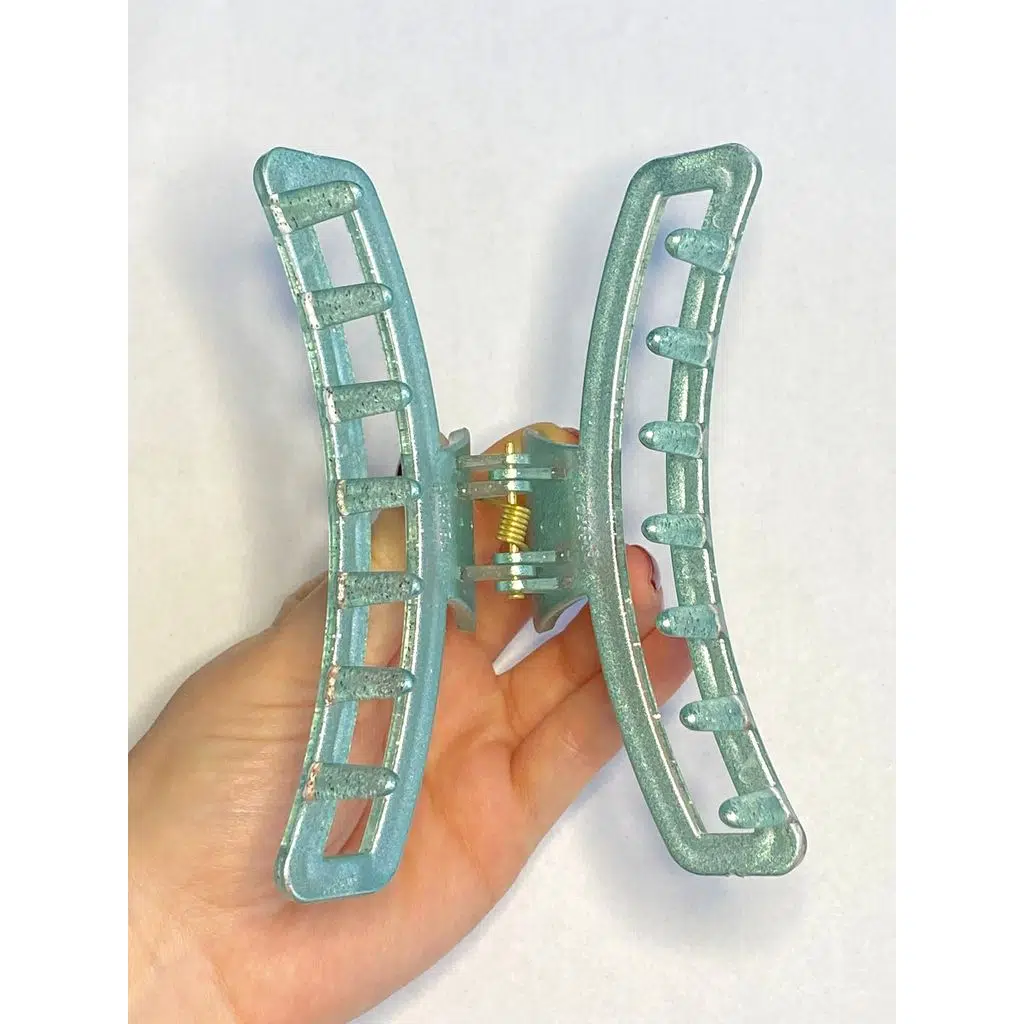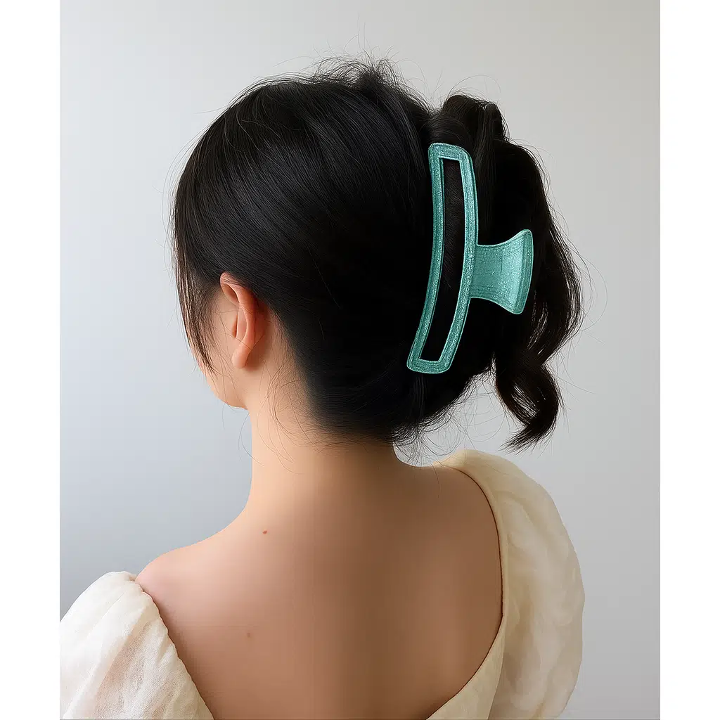 Simli Su Yeşili Renk Eliptik Model Mandal Toka 11 cm - Şık ve Dayanıklı