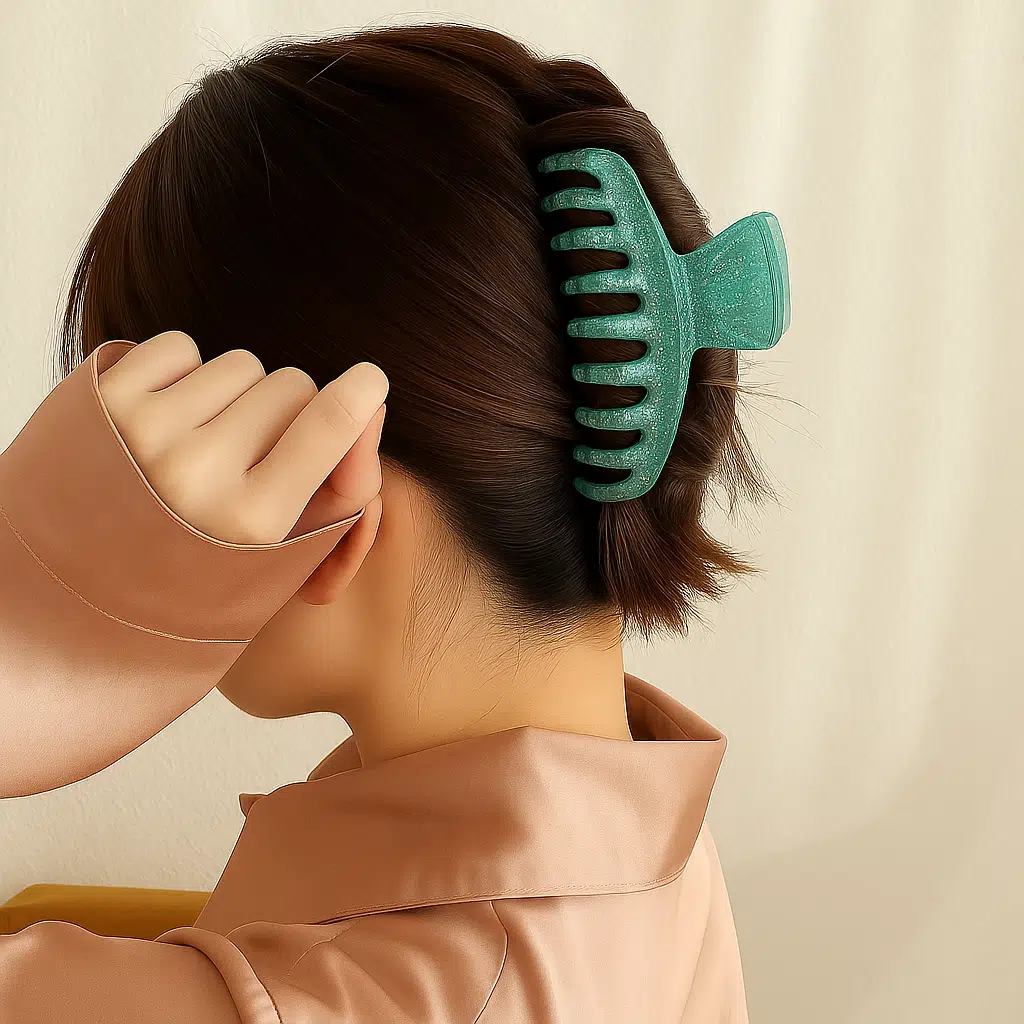Simli Su Yeşili Renk Tırmık Model Mandal Toka 11 cm - Şık ve Dayanıklı