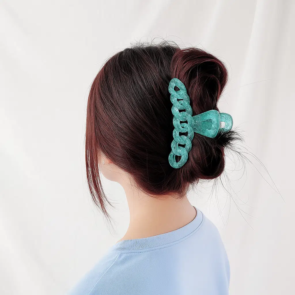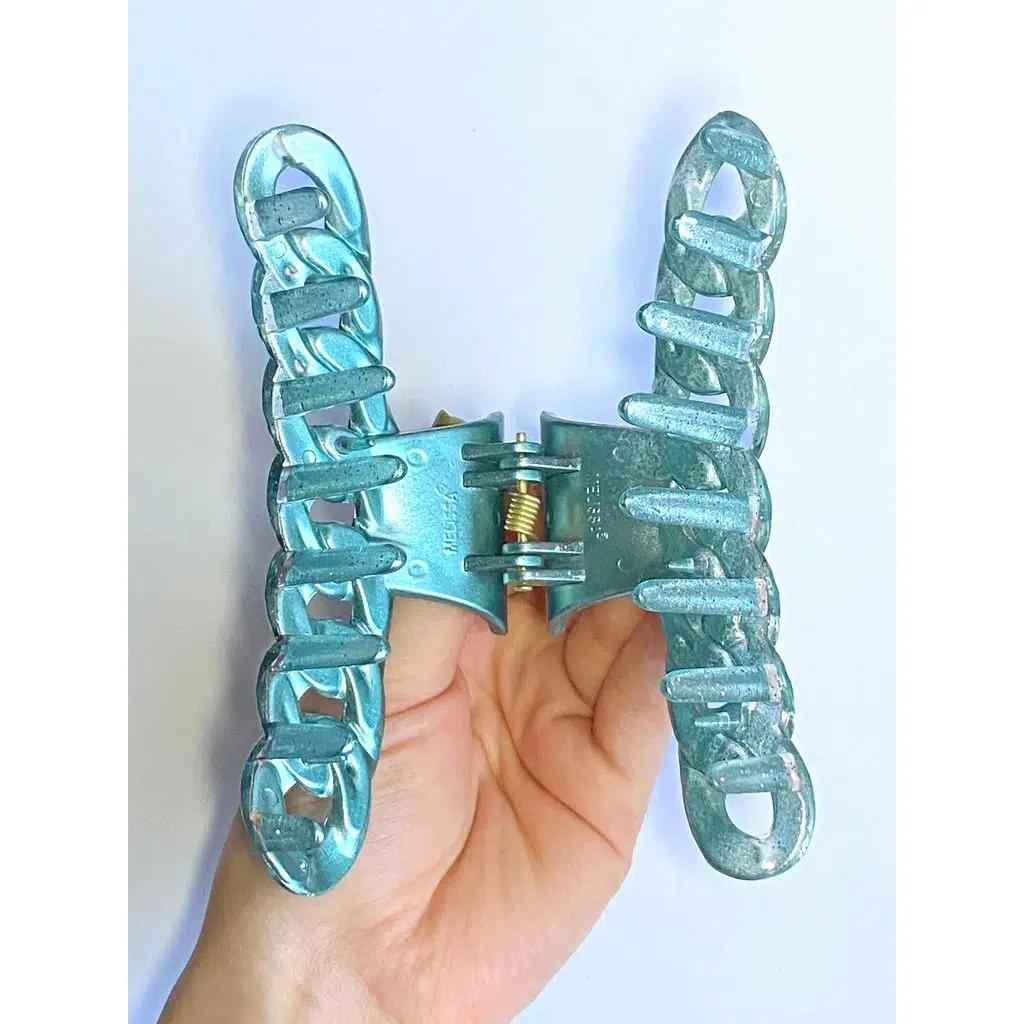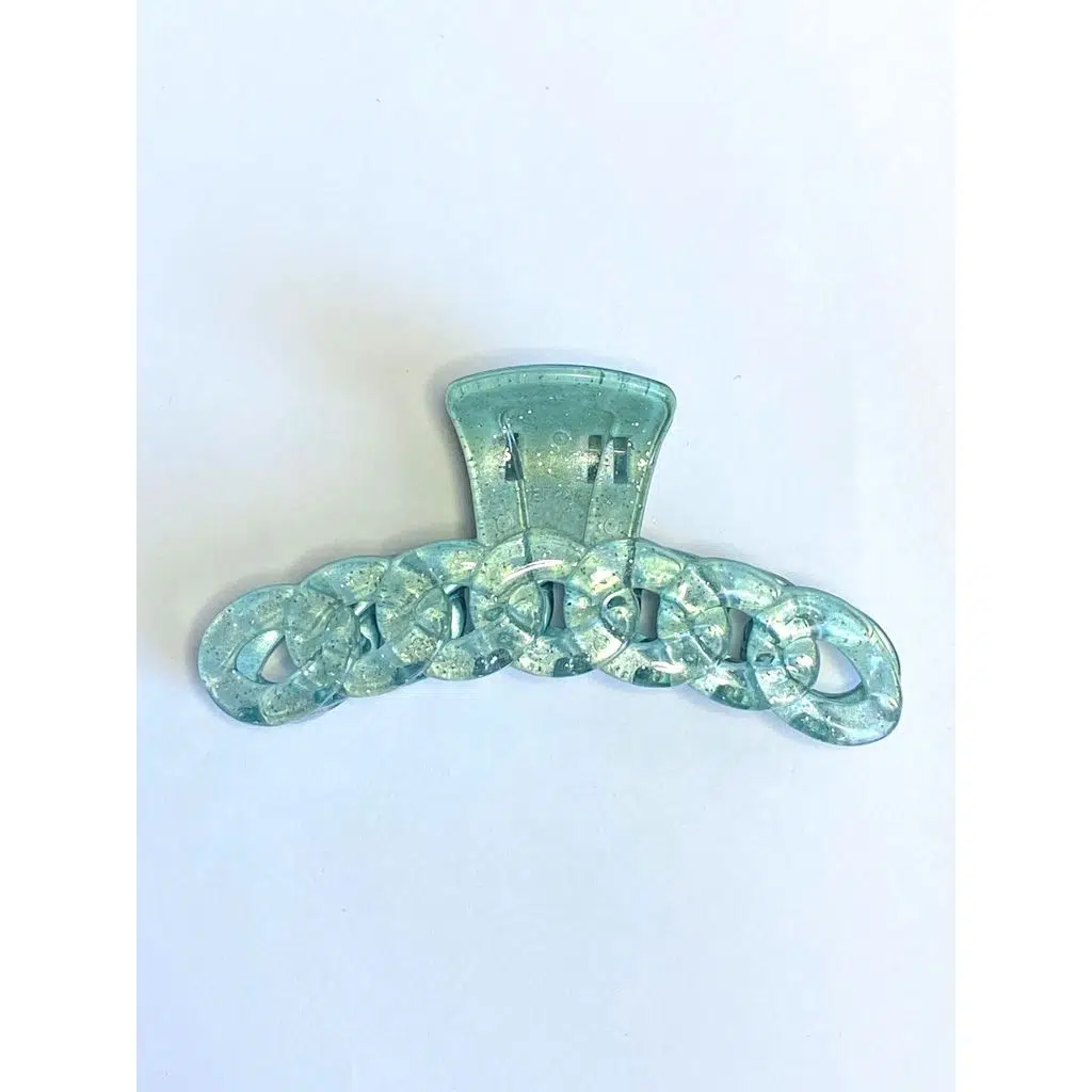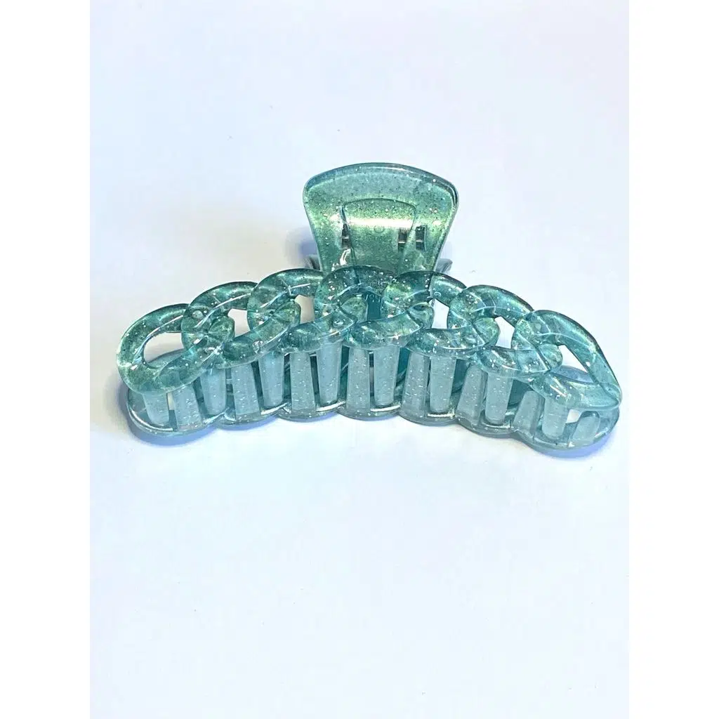 Simli Su Yeşili Renk Zincir Model Mandal Toka 11 cm - Şık ve Dayanıklı