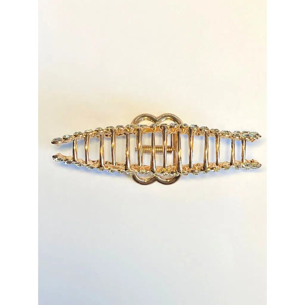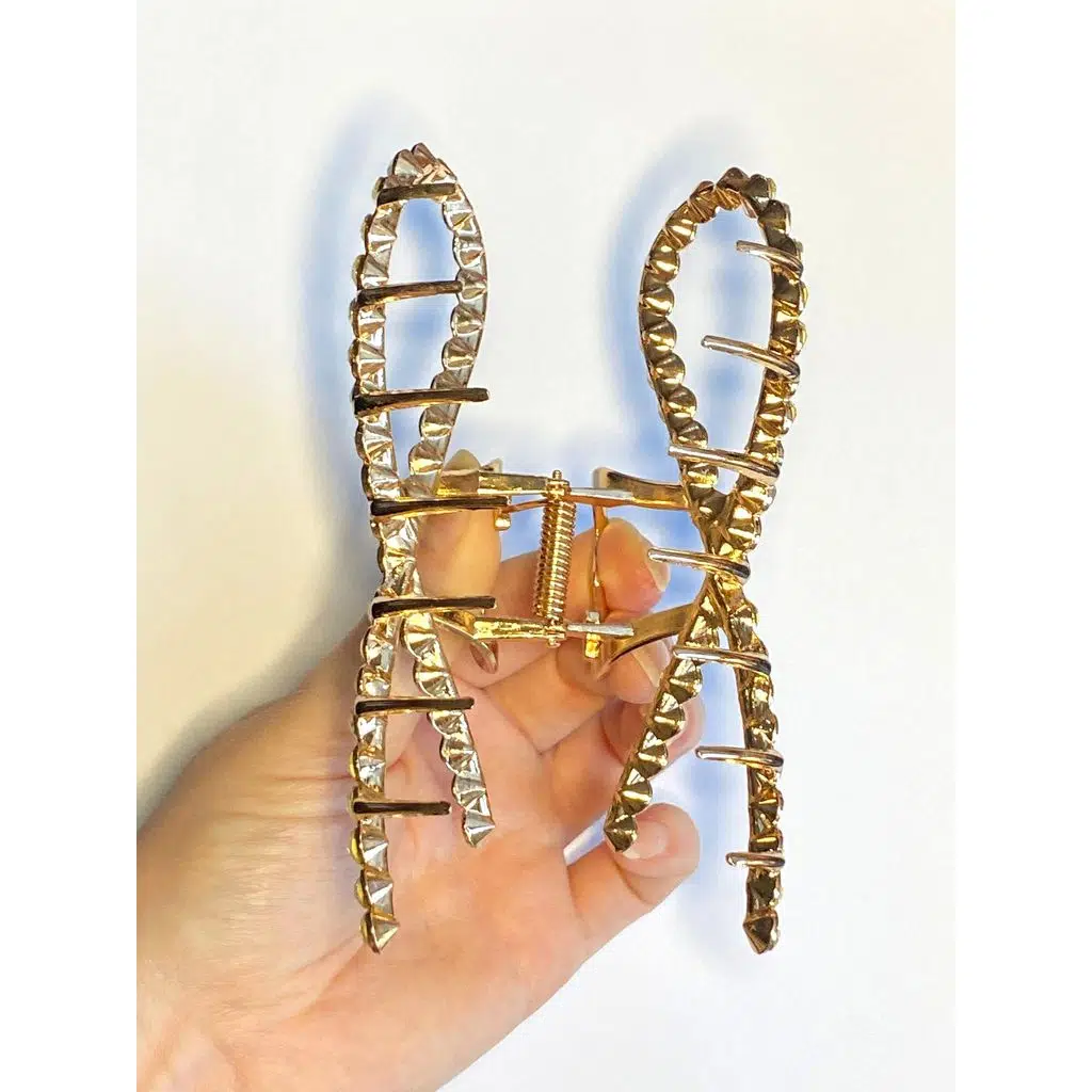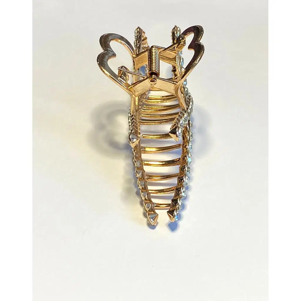 Taş Detaylı Gold Fiyonk Formlu 11 cm Saç Tokası, ışıltılı tasarımı ve zarif formuyla her saç tipine mükemmel uyum sağlar. Gold metal gövdesi ve taş işlemeli detaylarıyla saçlarını adeta bir mücevher gibi süsler. Hem günlük kullanımda hem özel davetlerde etkileyici bir stil yaratmak için idealdir.