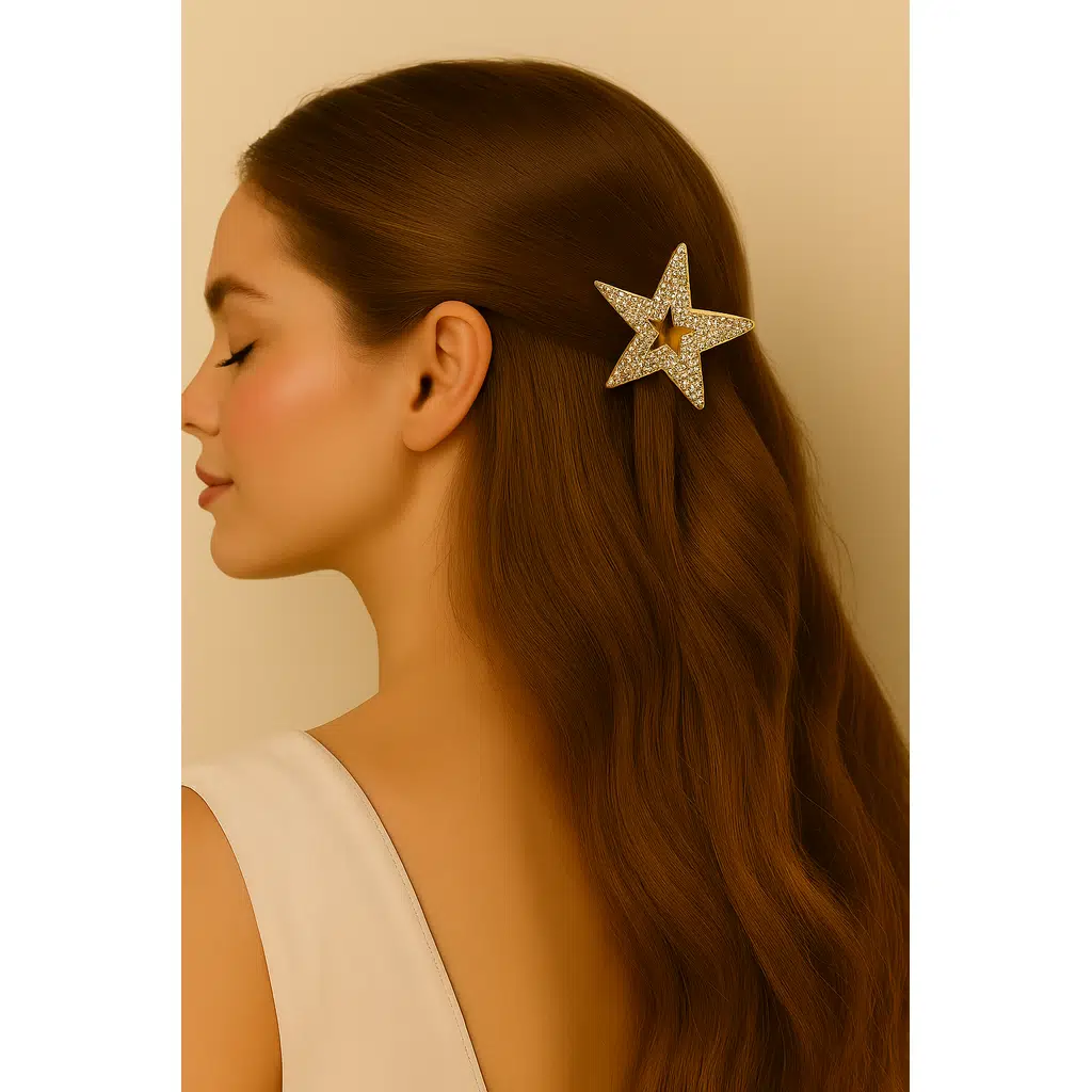 5 cm Gold Yıldız Formlu Taş Detaylı Saç Tokası, ışıltılı tasarımıyla saçlarına zarif bir parlaklık kazandırır. Gold rengi ve taş süslemeleriyle her saç rengine uyum sağlayan bu özel parça, günlük şıklığını tamamlamak ya da özel davetlerde göz alıcı bir dokunuş yapmak için idealdir.