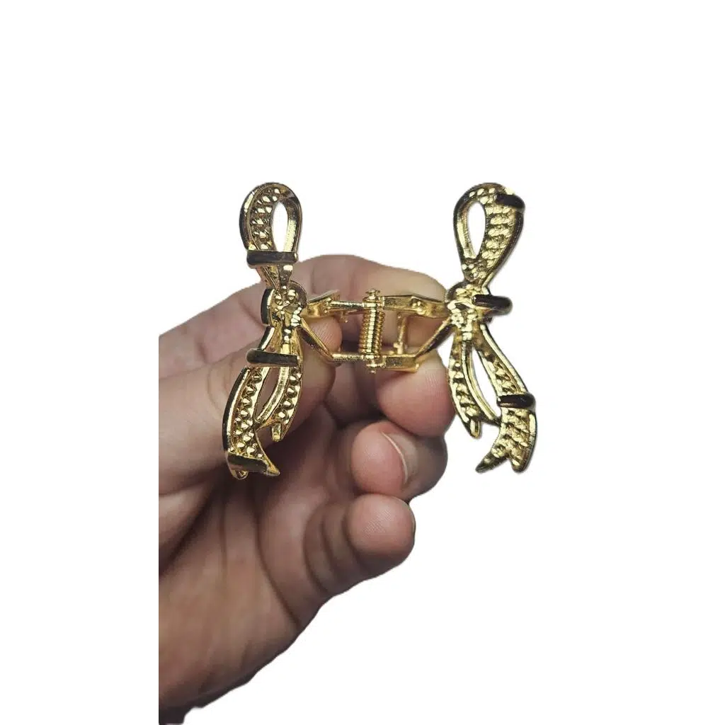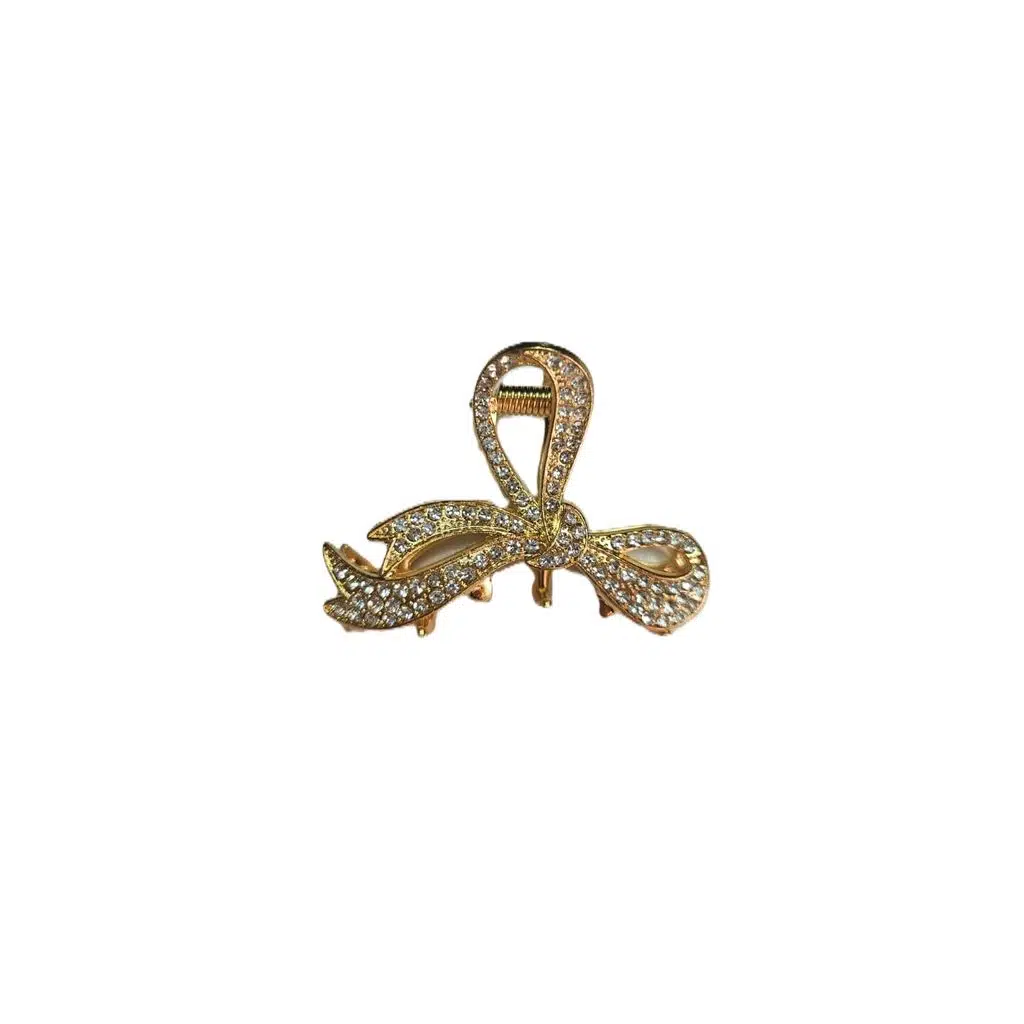 Taşlı Altın Renk Çift Taraflı Metal Mandal Saç Tokası 4 cm Küçük Boy