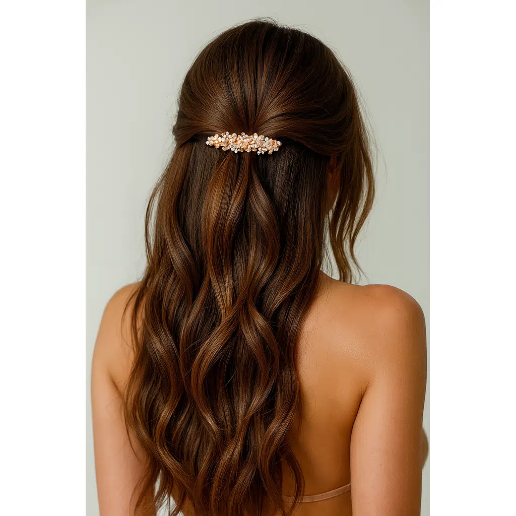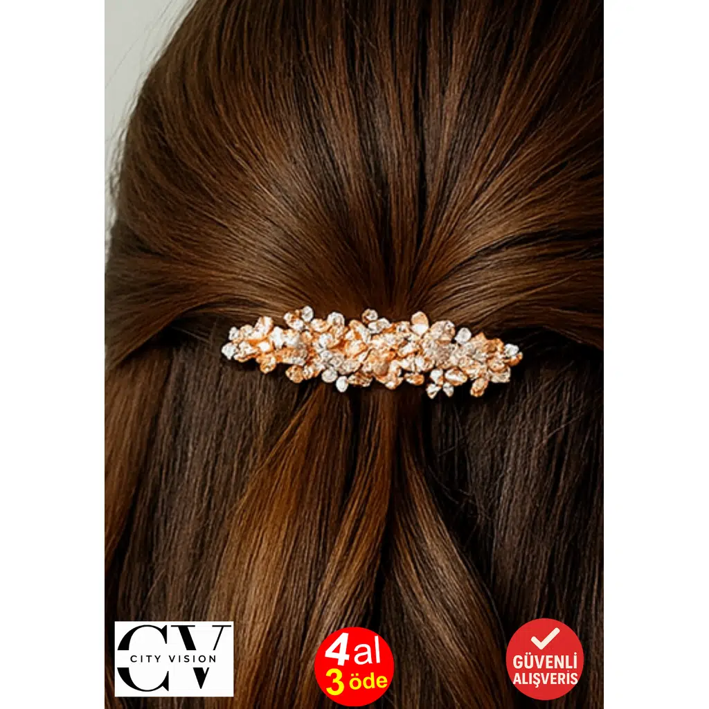 Taşlı Çiçekli Tasarım Bakır Renk Otomatik Toka 6 cm
