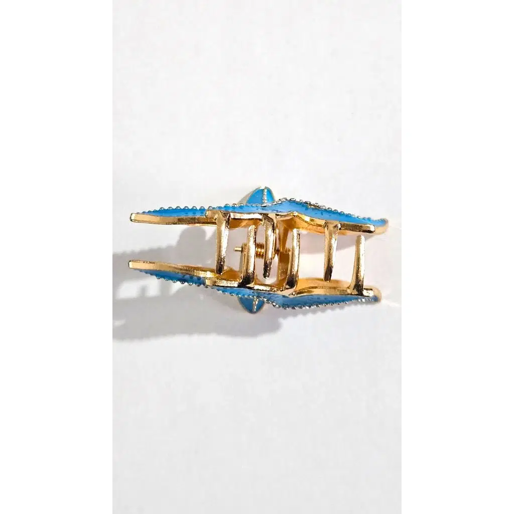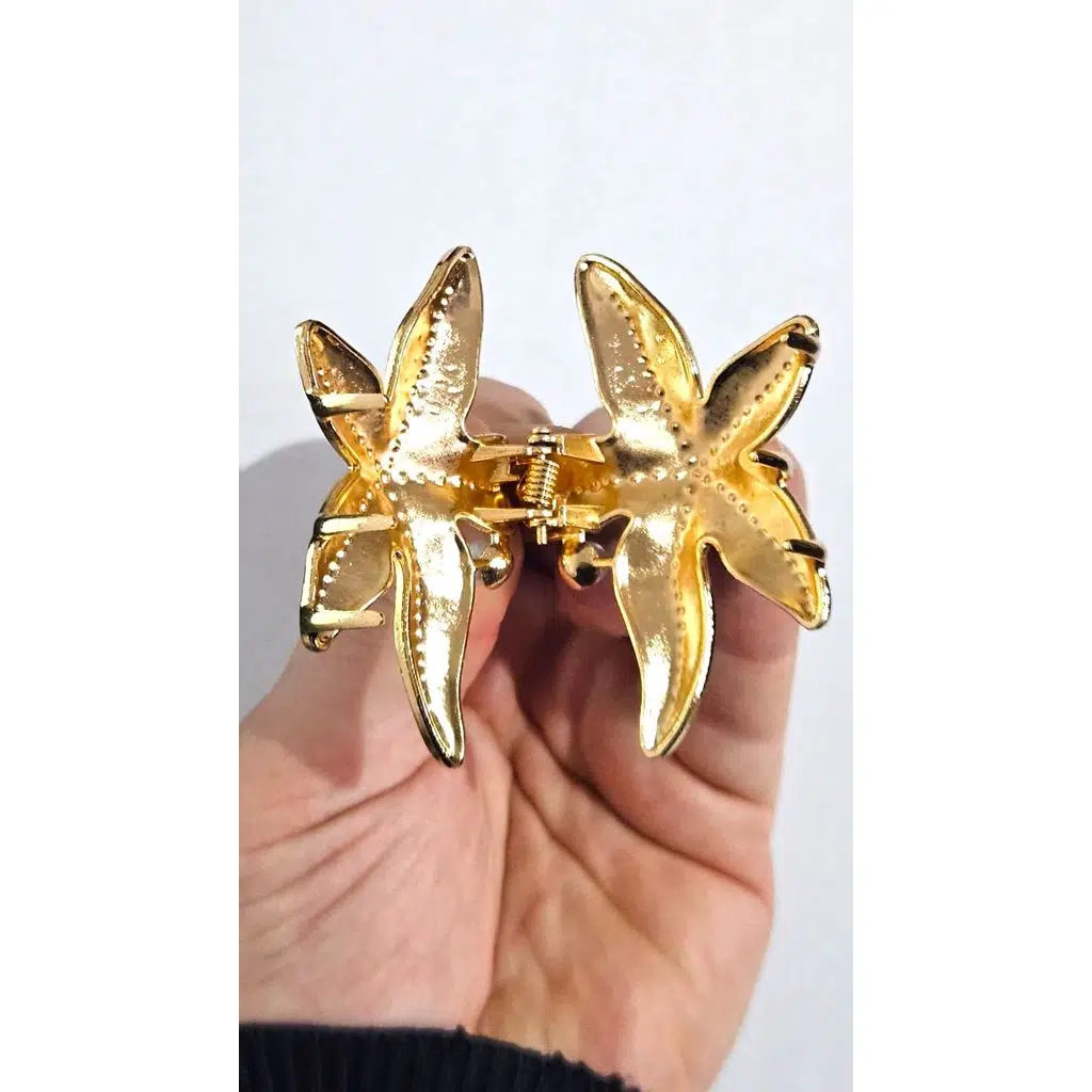 Zarif tasarımıyla öne çıkan bu deniz yıldızı formundaki saç tokası, şıklığı ve fonksiyonelliği bir arada sunar.