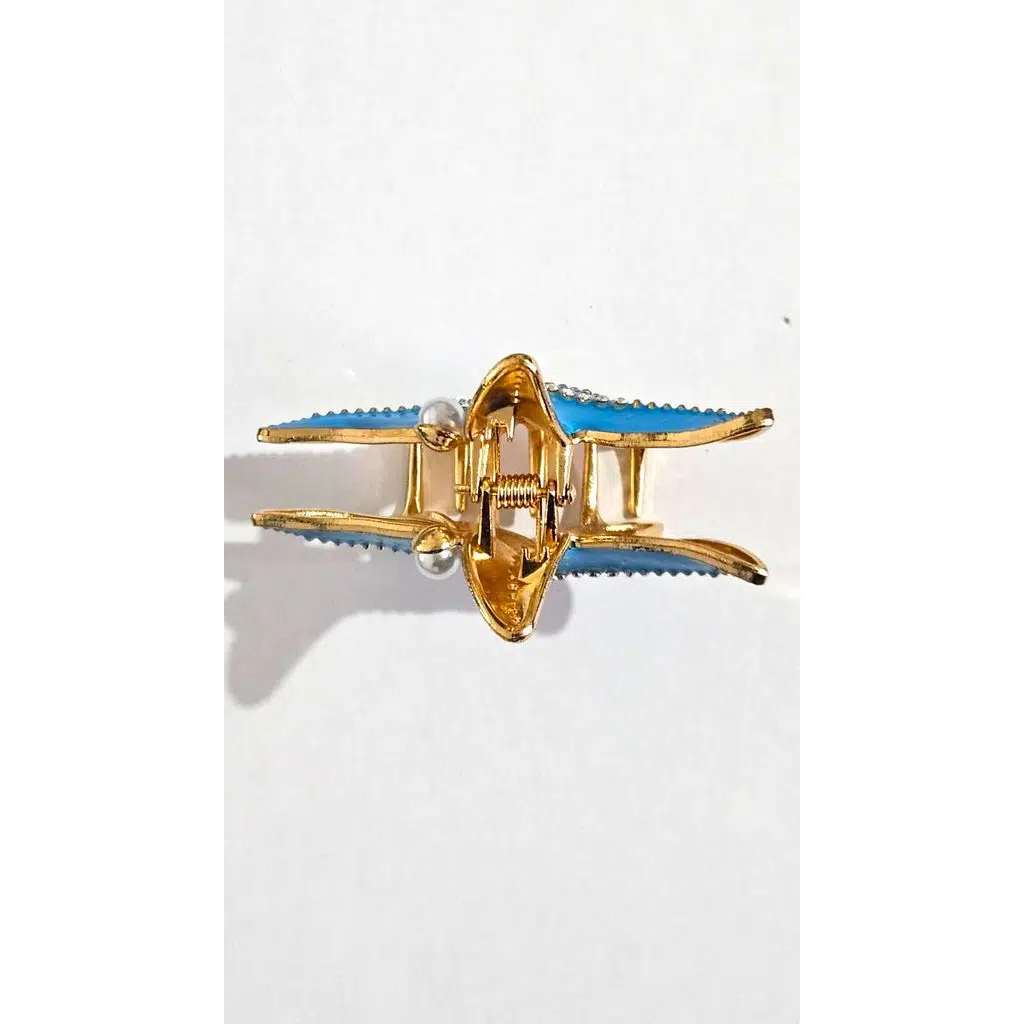 Taşlı Deniz Yıldızı Model Mavi Renk 6,5 cm Metal Mandal Saç Tokası