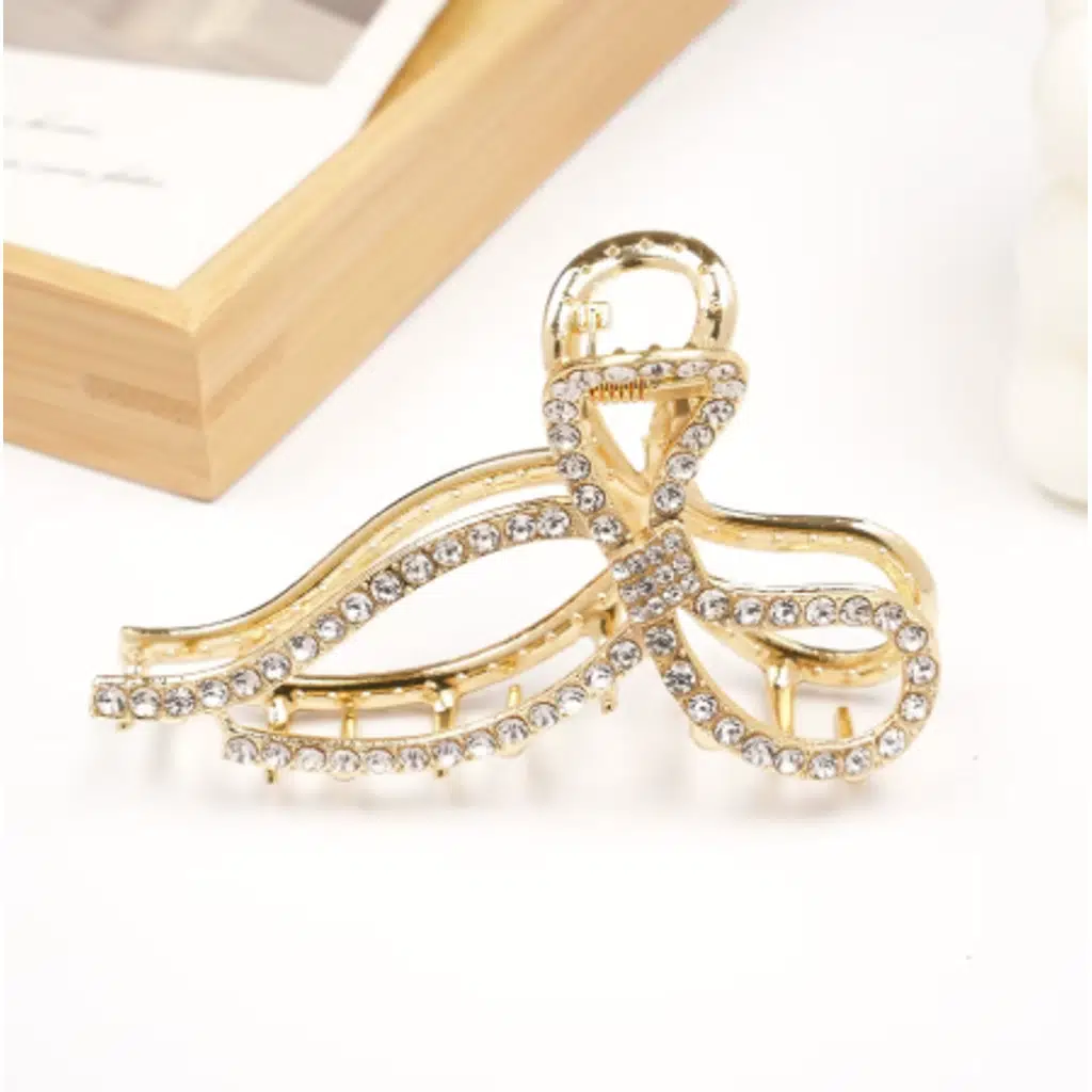 Taşlı Fiyonk Tasarım Metal Mandal Saç Tokası 5 cm